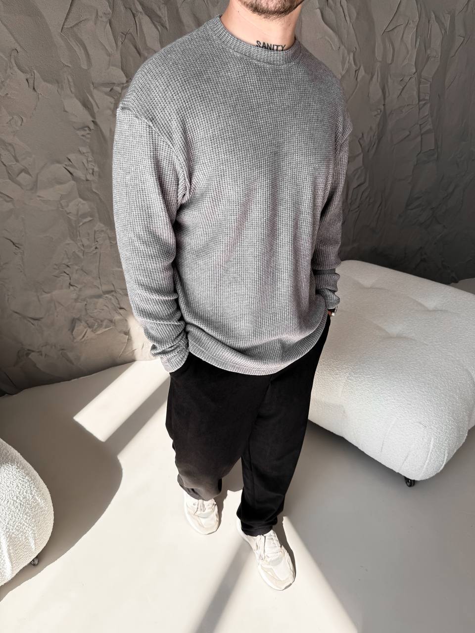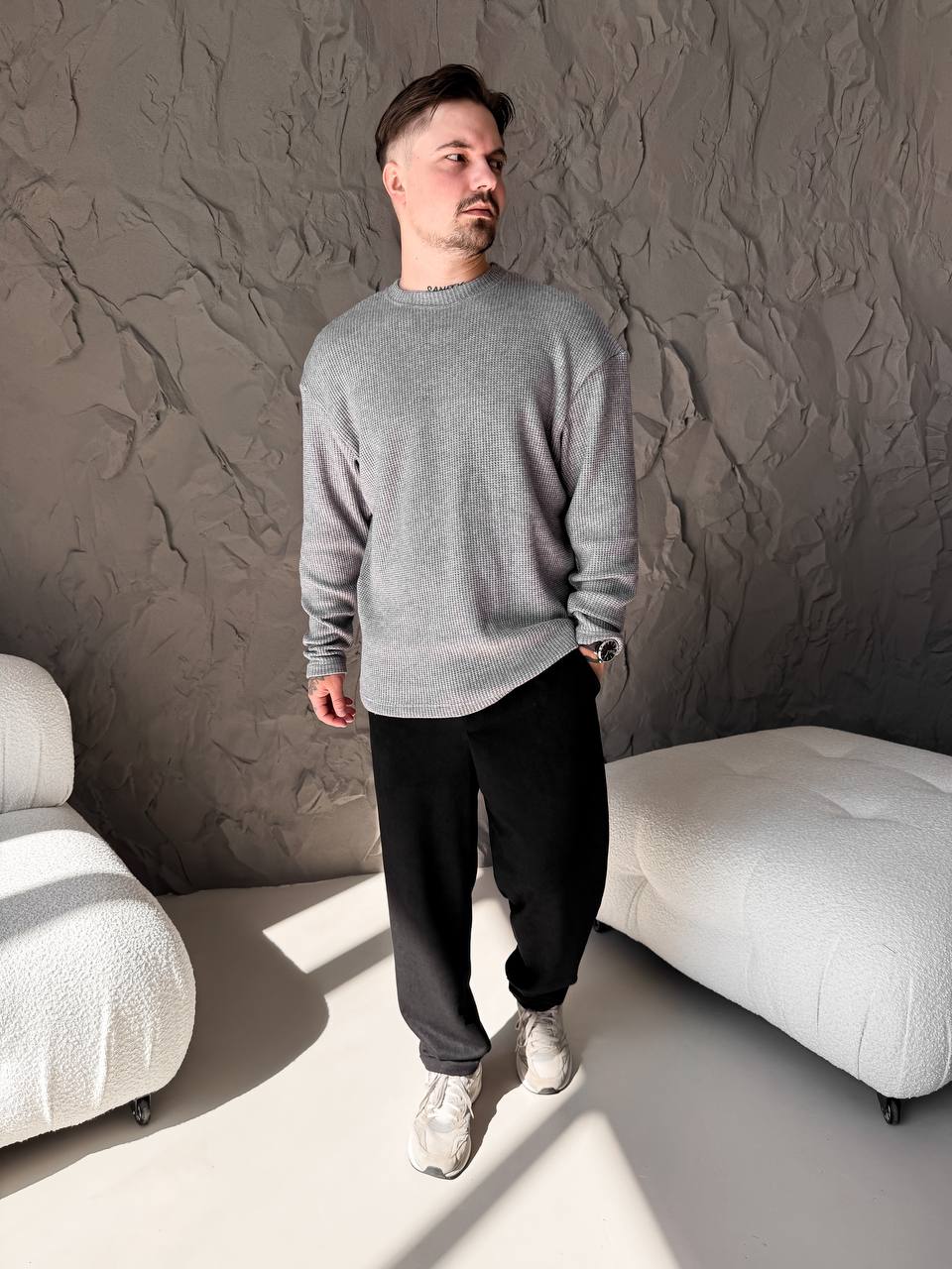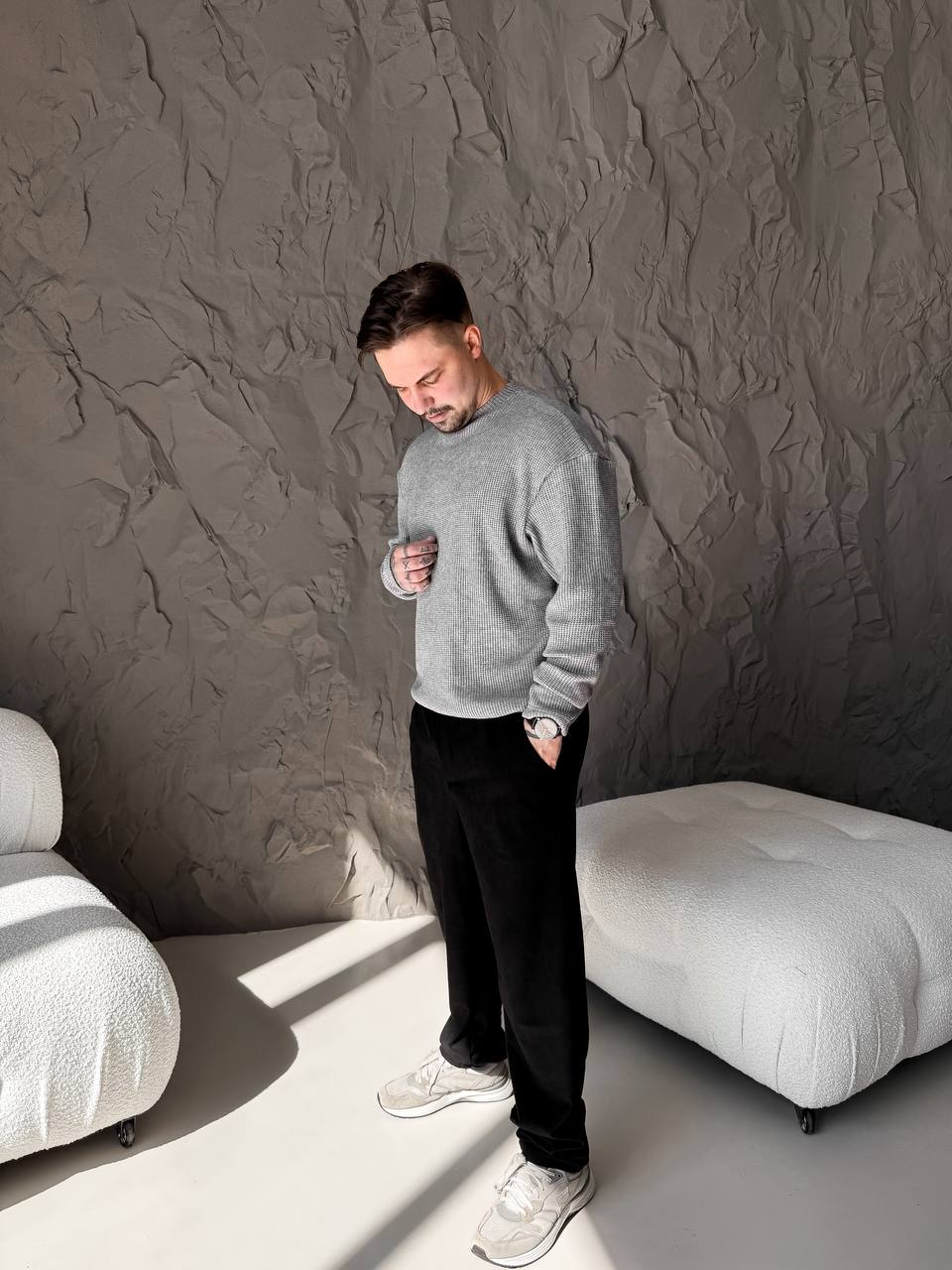 Мужской Вязаный Темно-Серый Свитер – Свободный с Круглым Вырезом