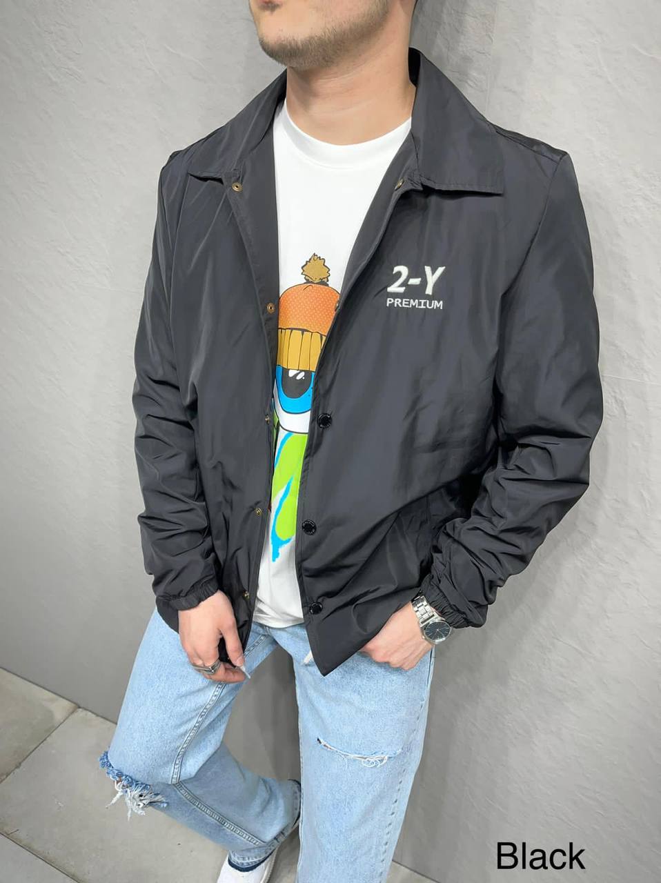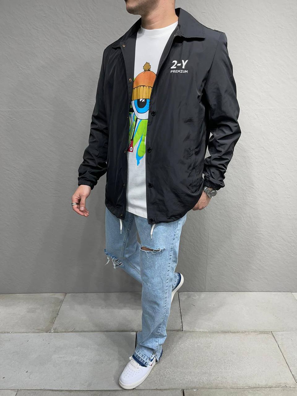 Мужская Черная Ветровка Свободная – Водоотталкивающая на Кнопках Заклепках