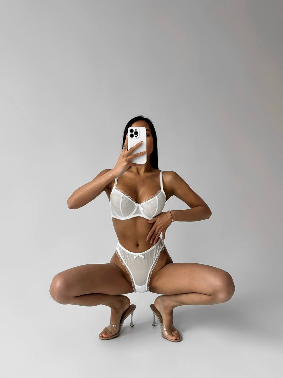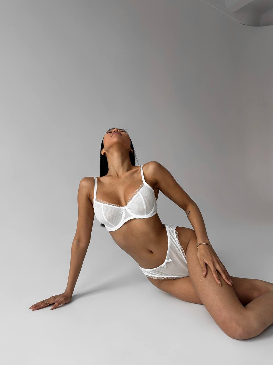 Женский Белый Комплект Нижнего Белья Сеточка с Рюшами