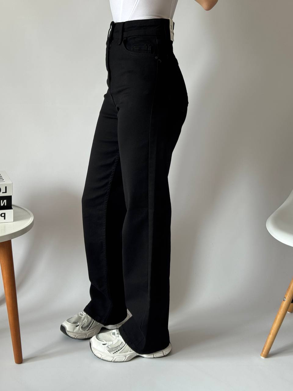 Женские Черные Джинсы Трубы Прямого Кроя с Высокой Посадкой