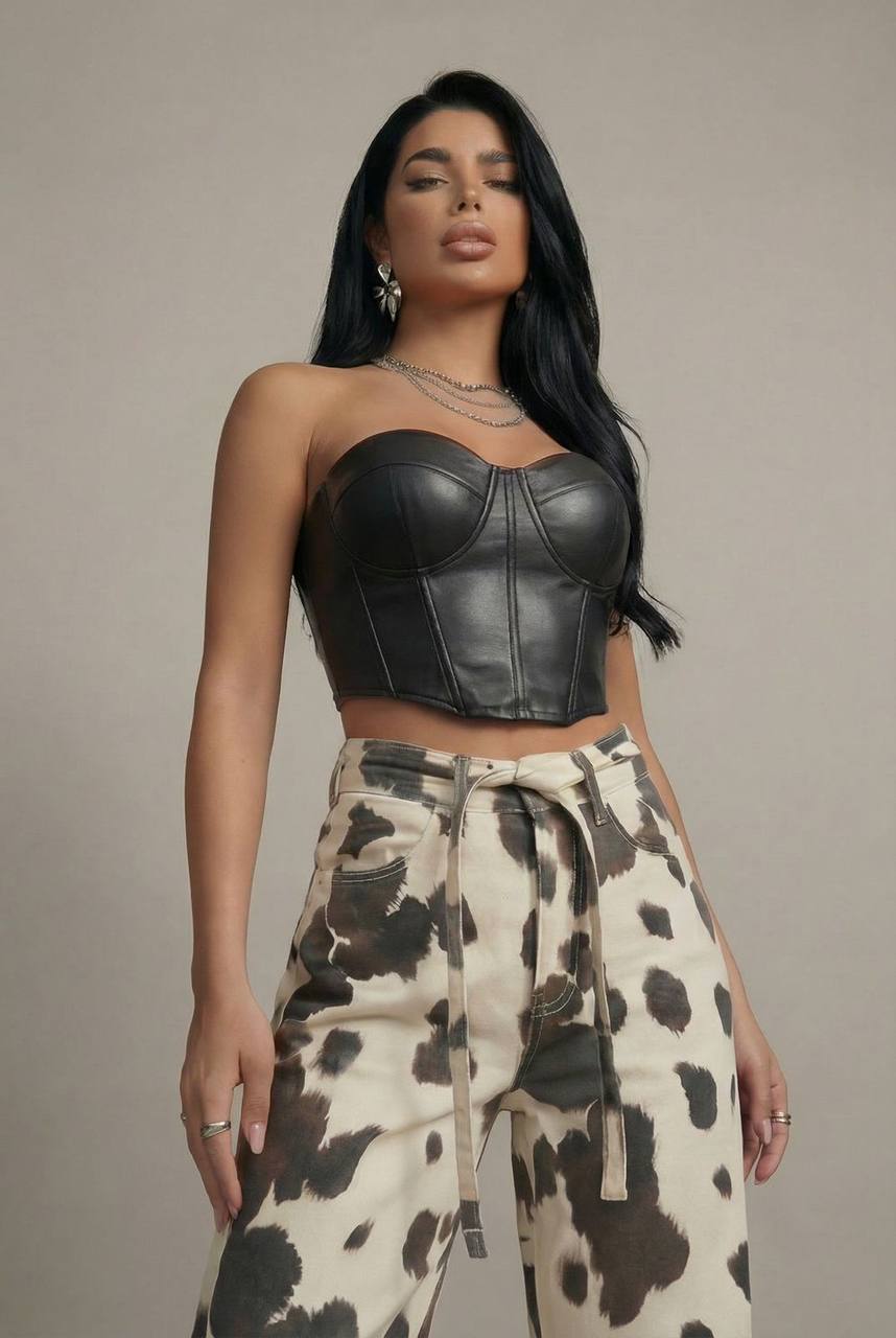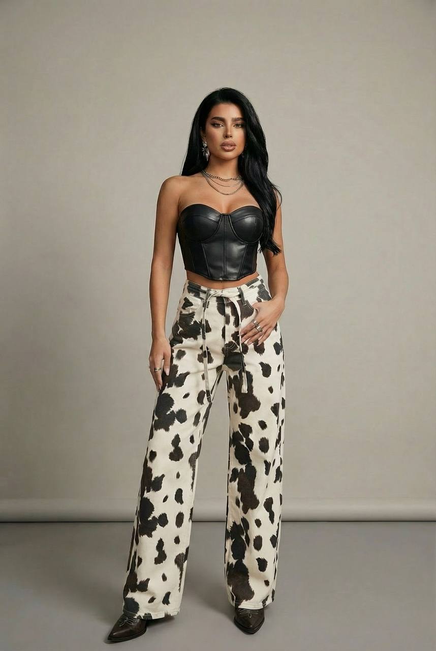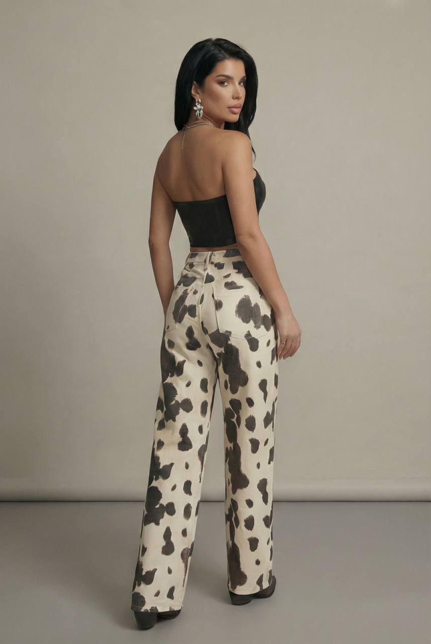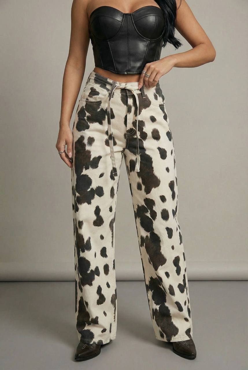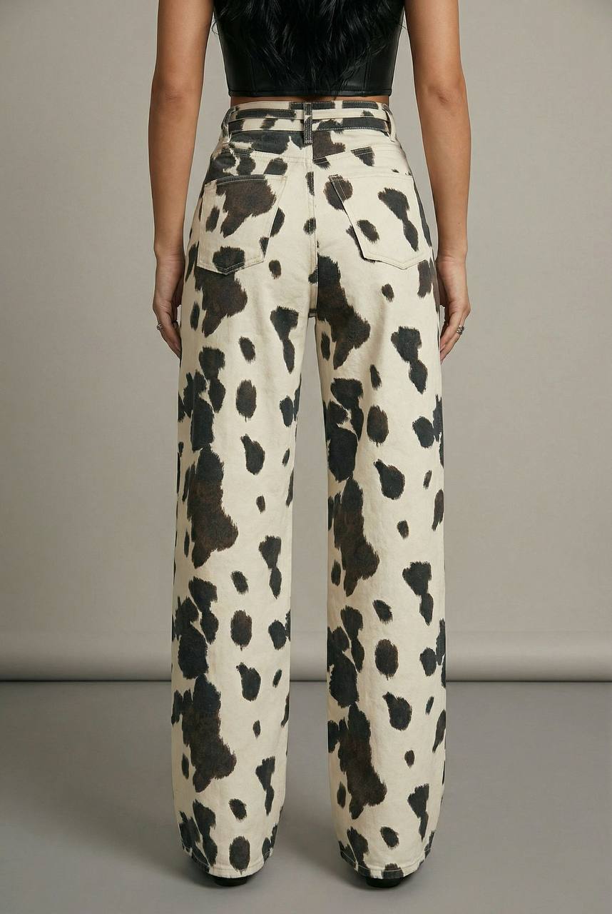 Женские Широкие Молочные Джинсы Палаццо с Пояском – Рябые Багги в Пятнах