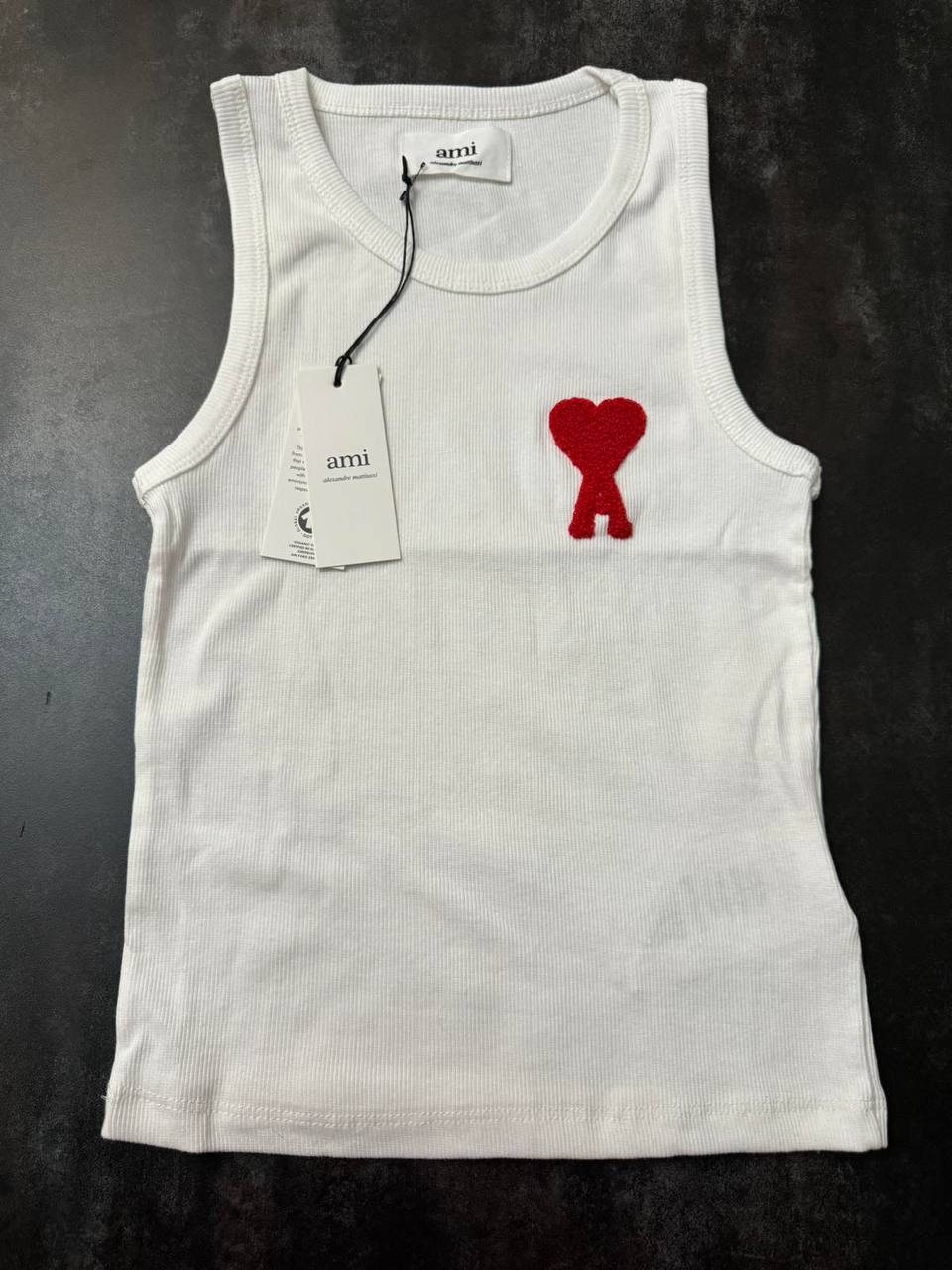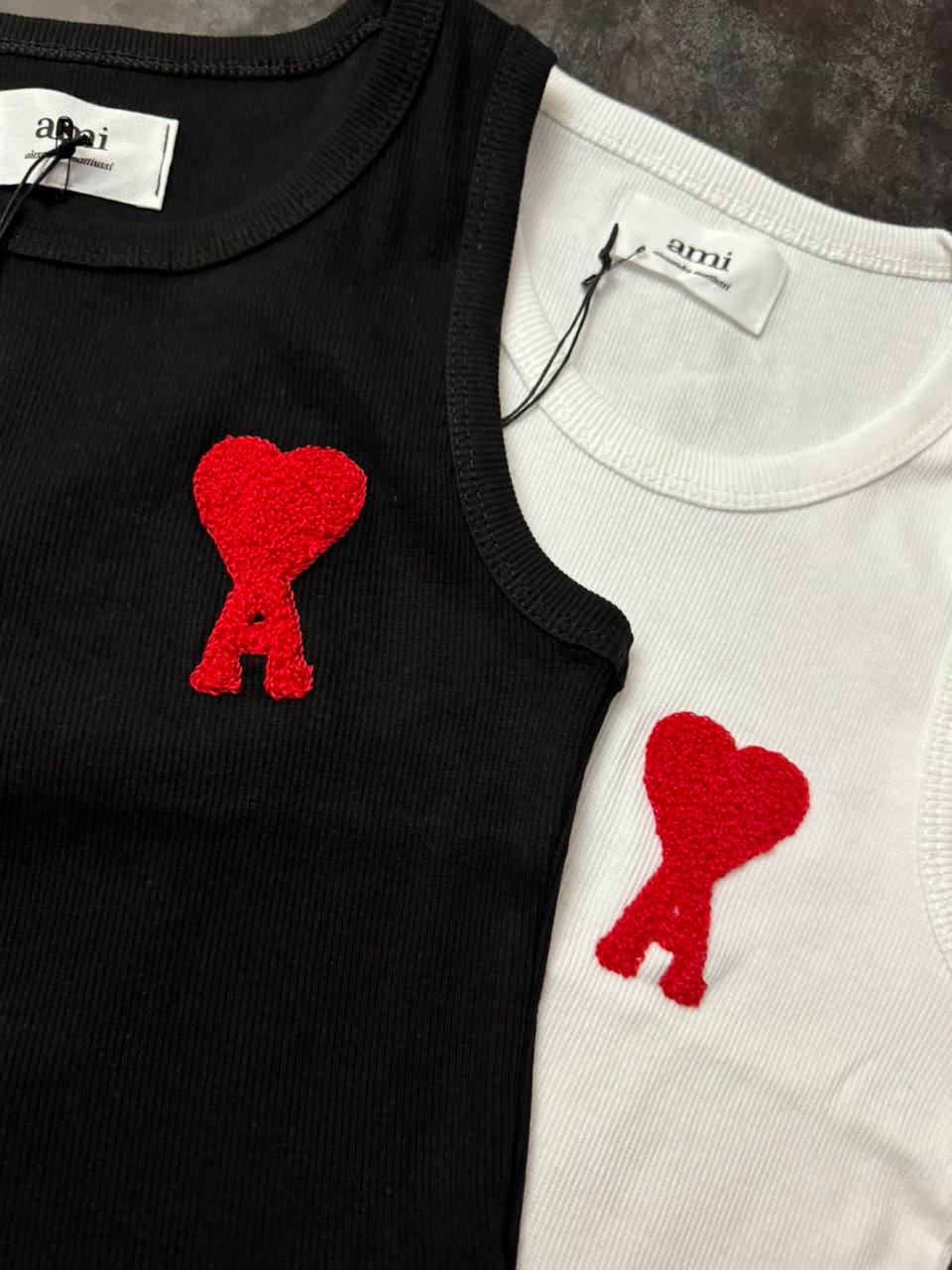 Женская Белая Майка в Рубчик с Вышитым Сердечком
