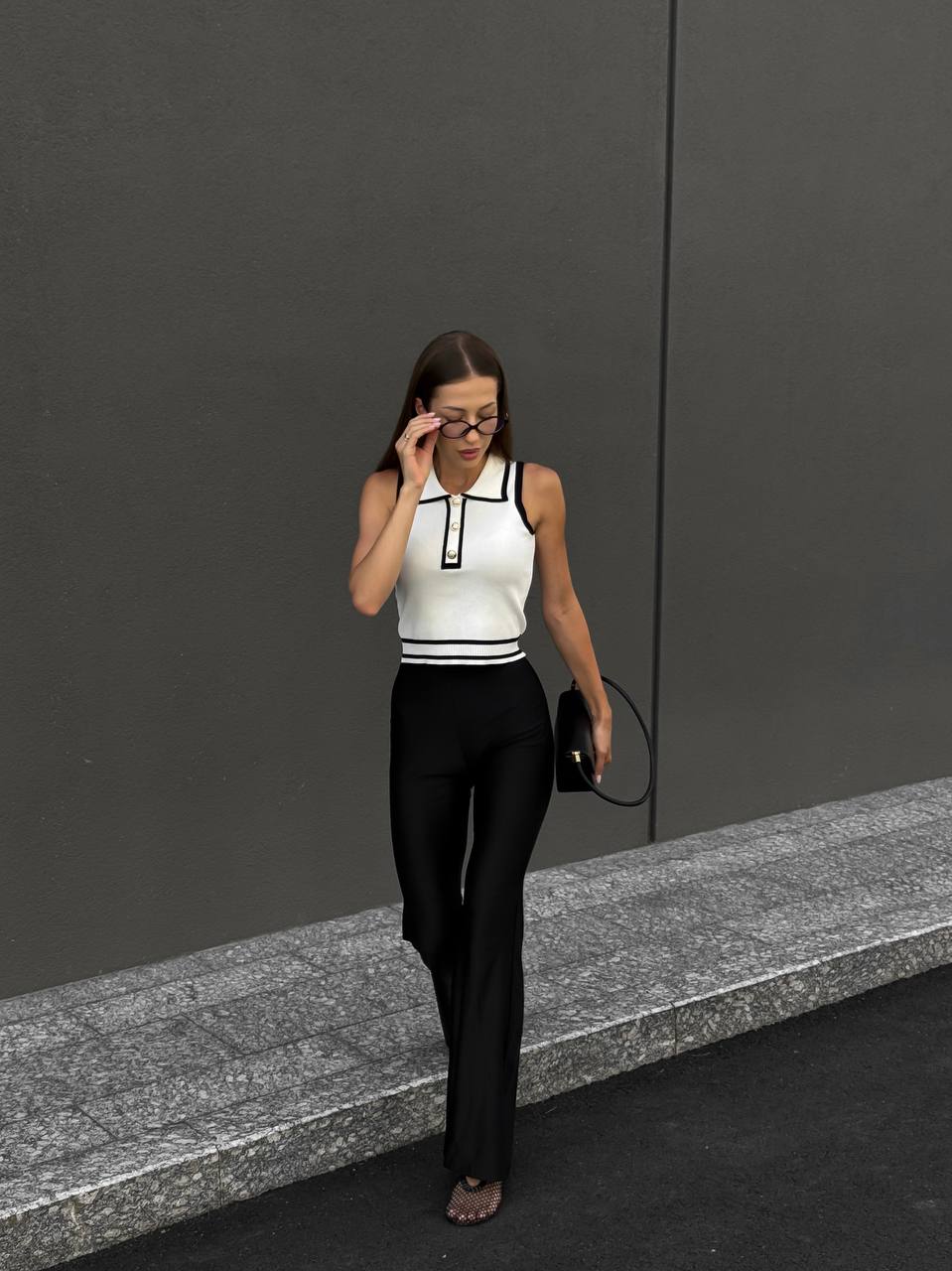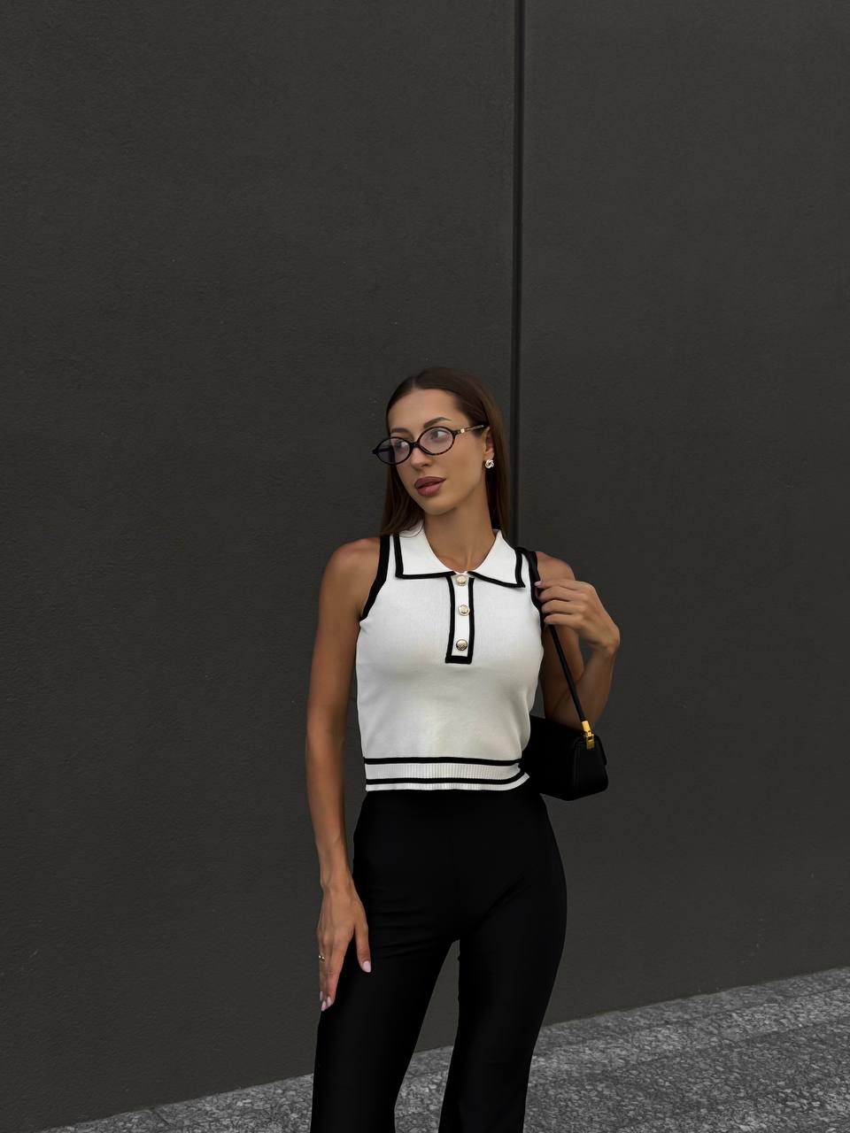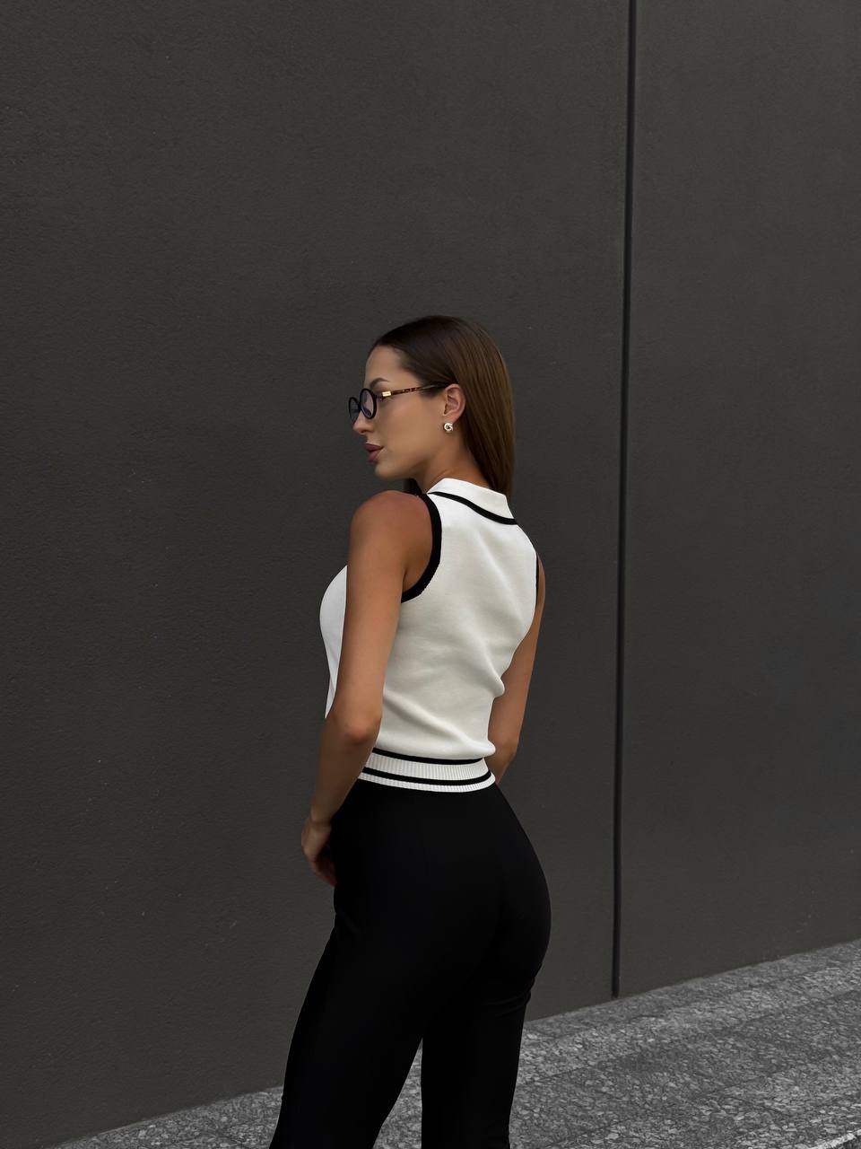 Женская Белая Майка-Жилет с Воротником и Окантовкой