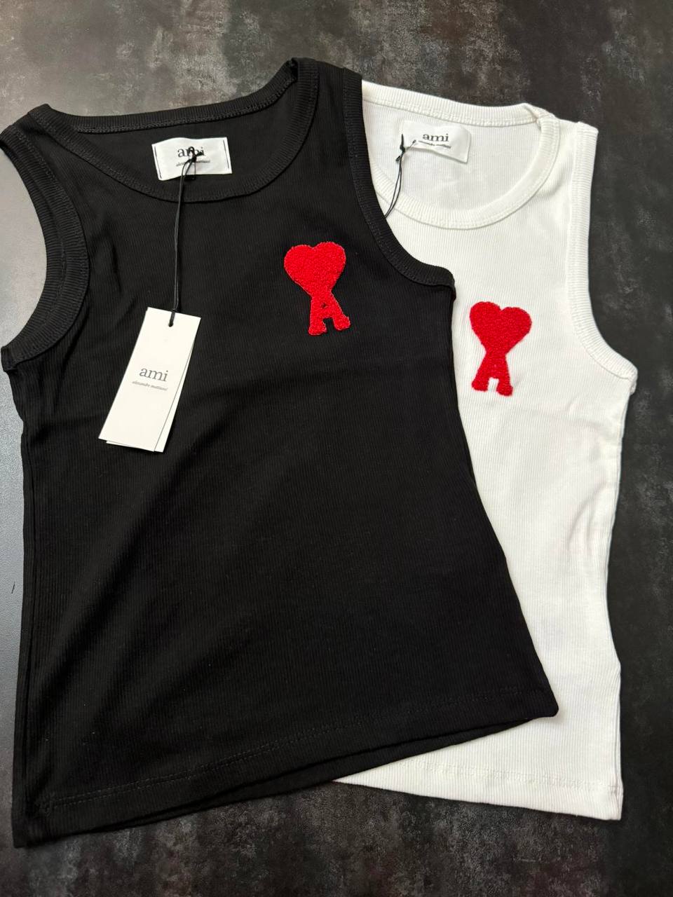 Женская Черная Майка в Рубчик с Вышитым Сердечком
