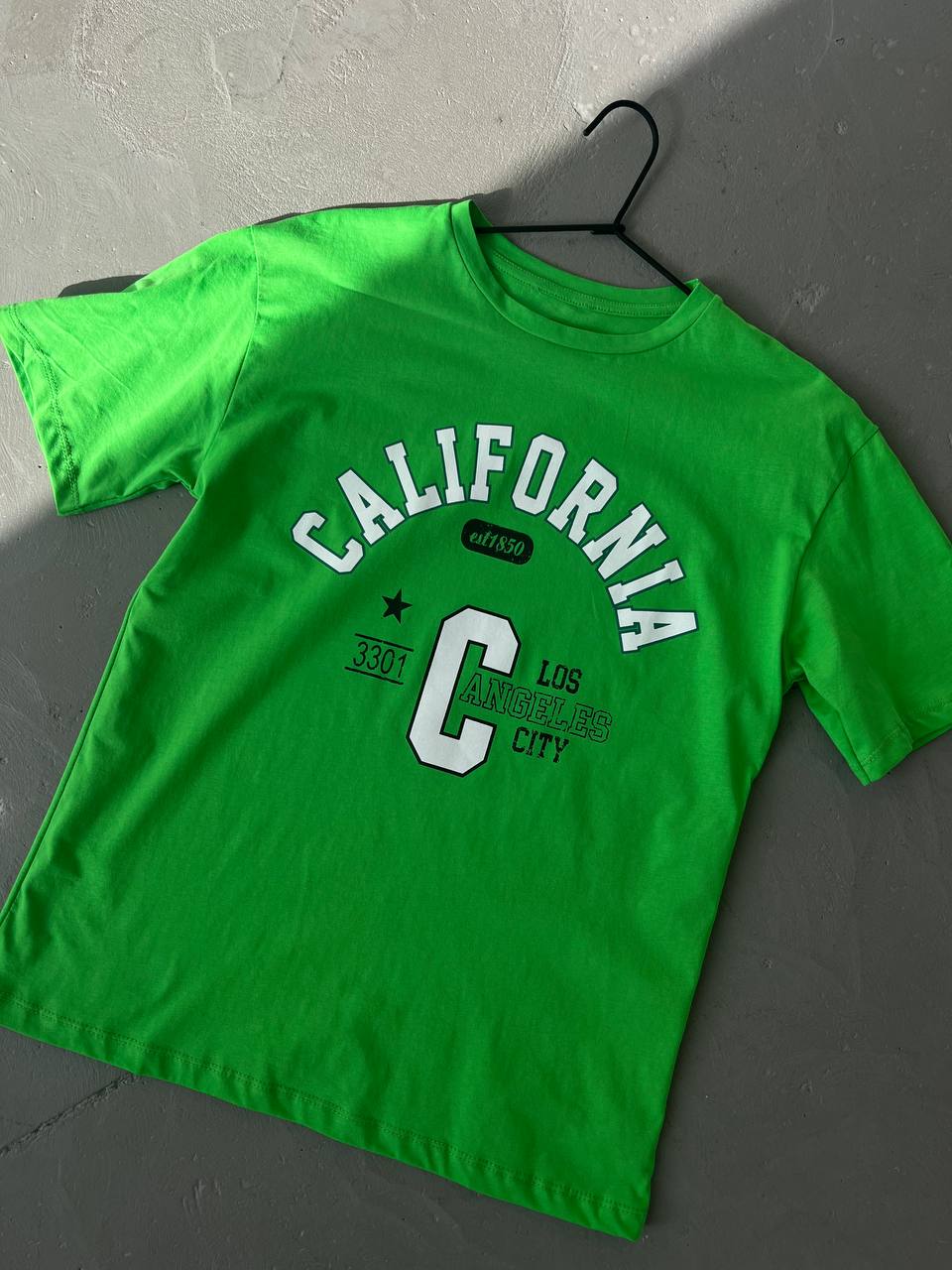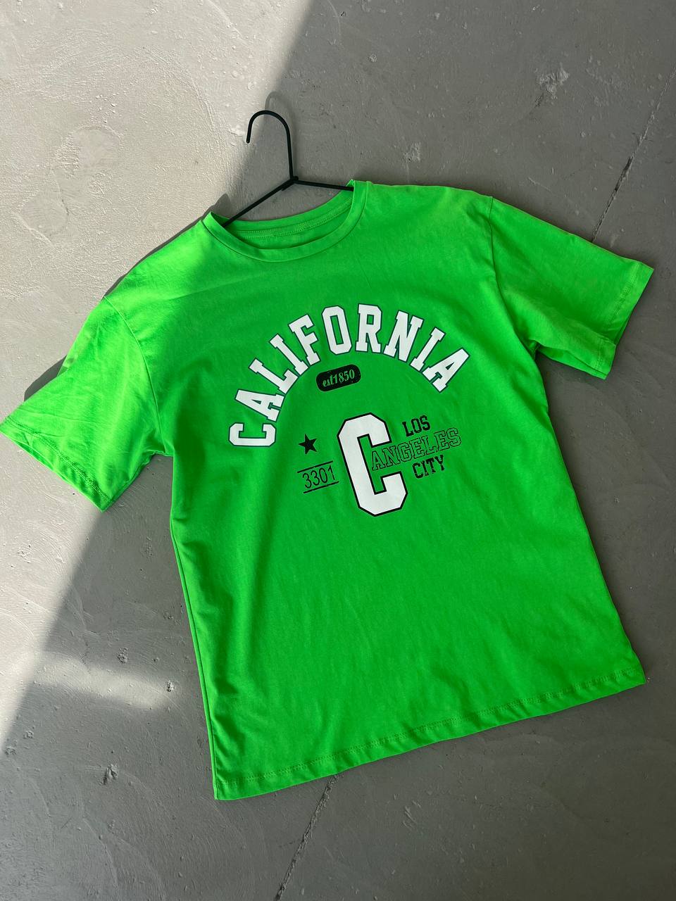 Женская Модная Зеленая Футболка – Свободного Прямого Кроя с Принтом Надписью