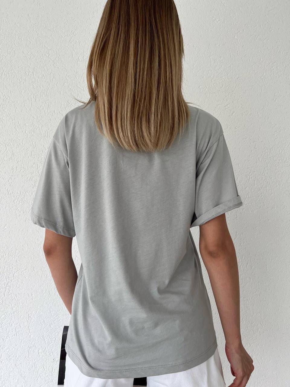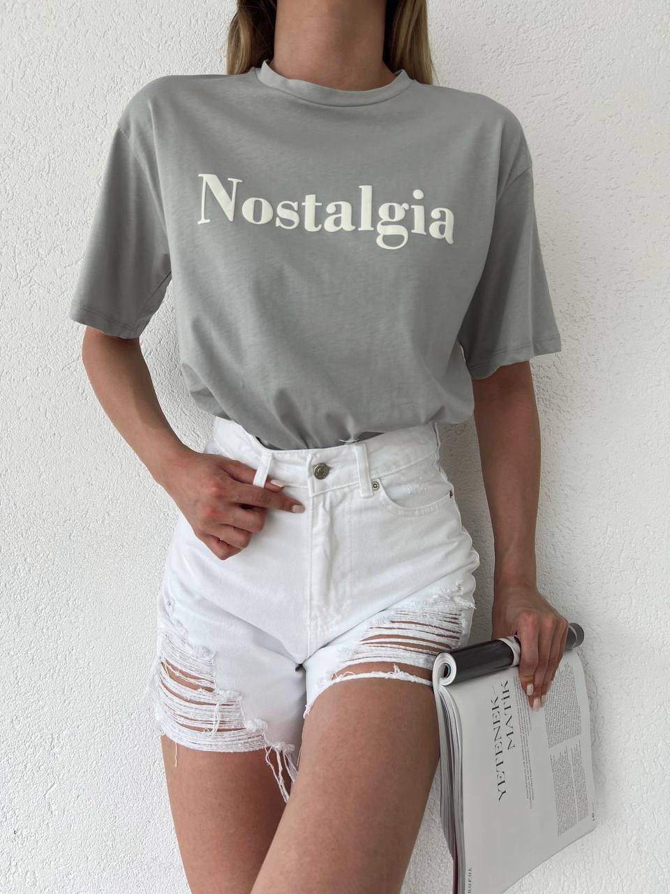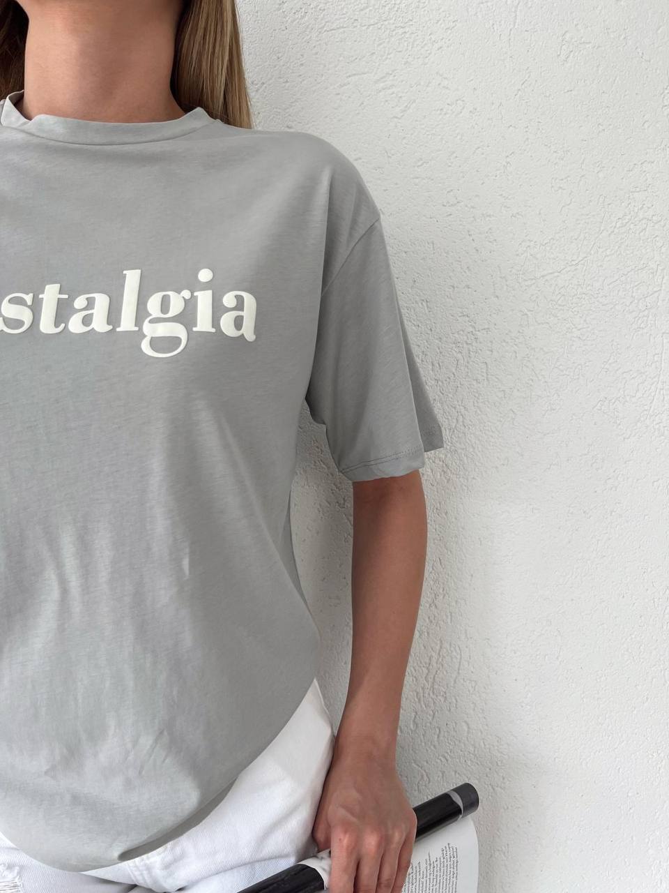 Женская Серая Футболка Оверсайз – Летняя с Удлиненными Рукавами и Надписью Nostalgia