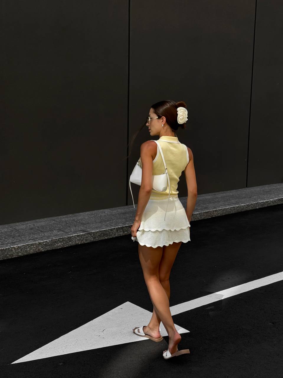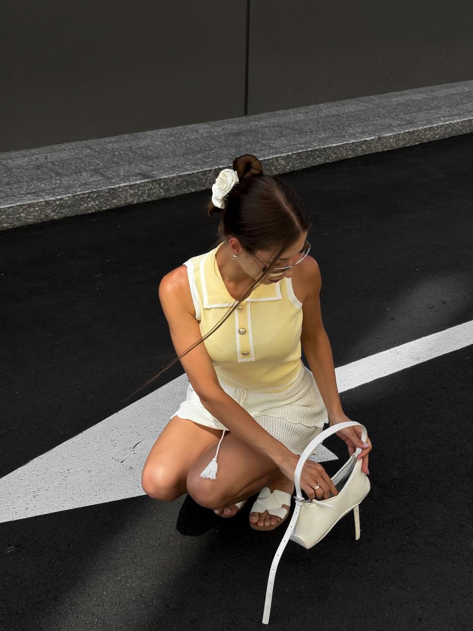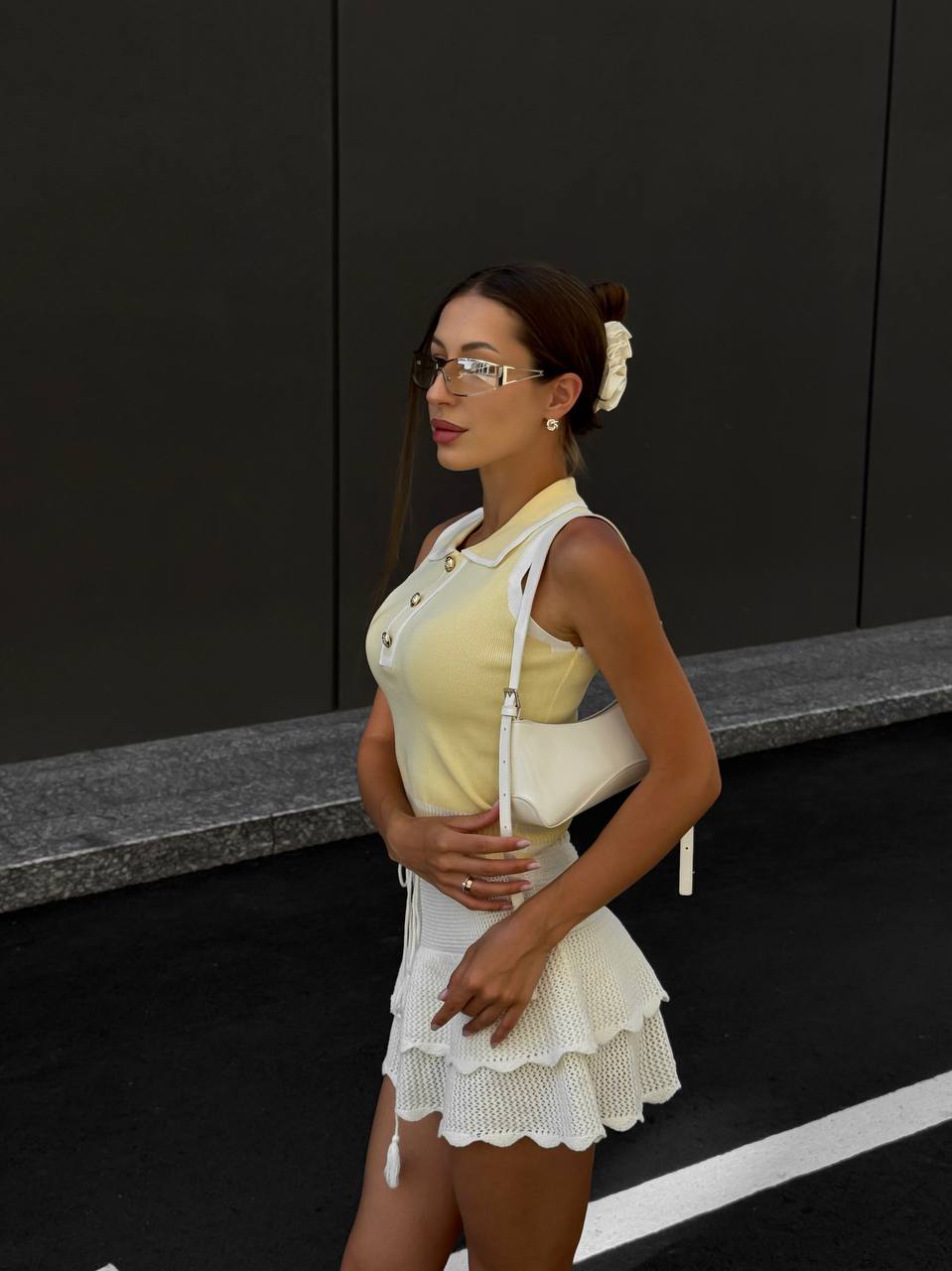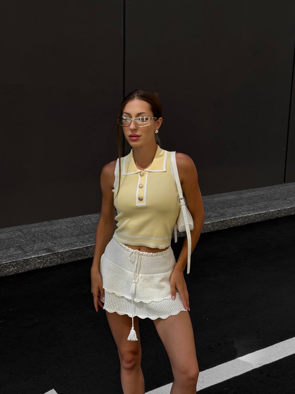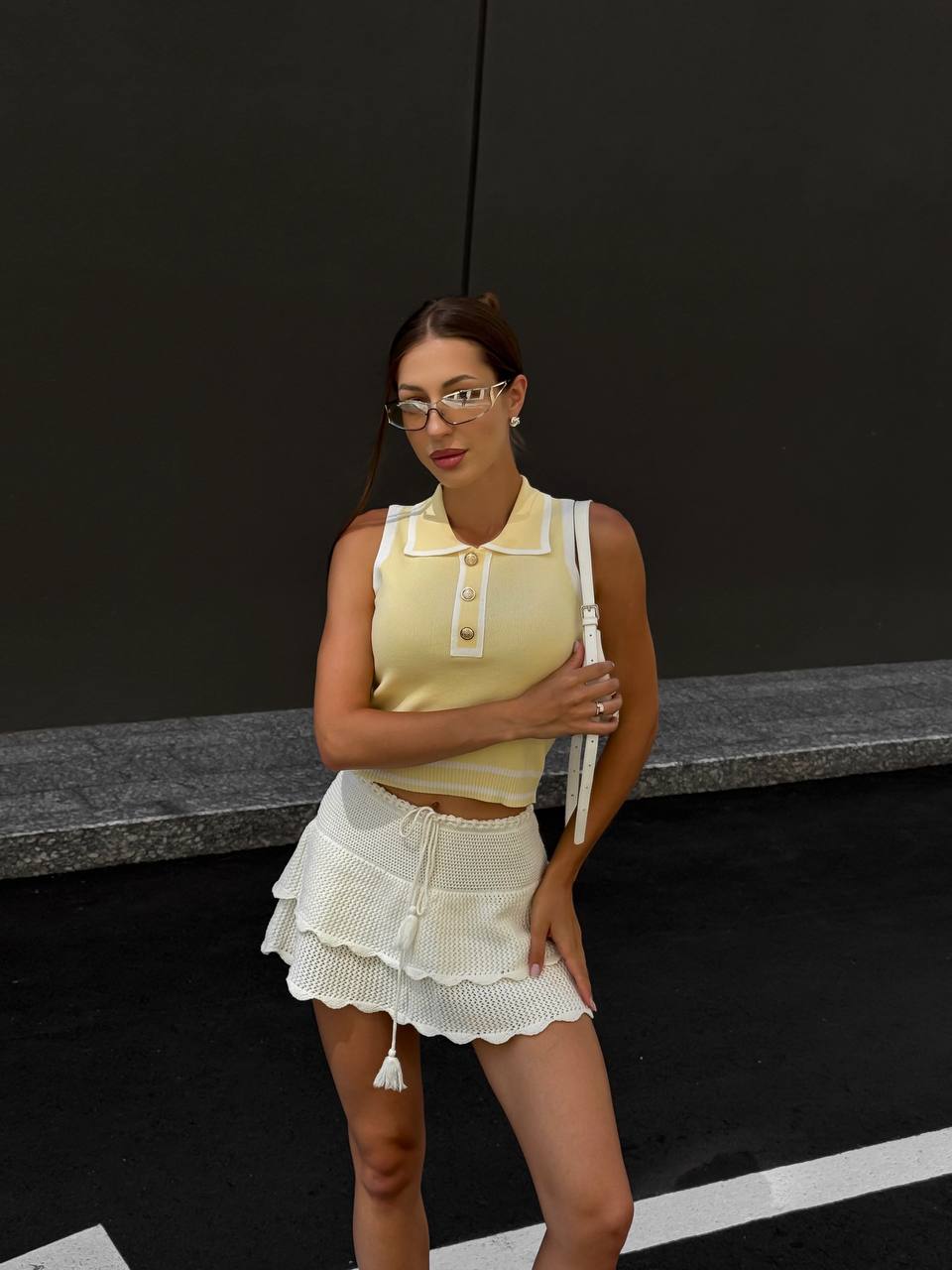 Женская Желтая Майка-Жилет с Воротником и Окантовкой