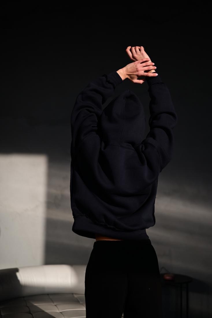 Женское Базовое Черное Худи Оверсайз с Утеплением на Флисе