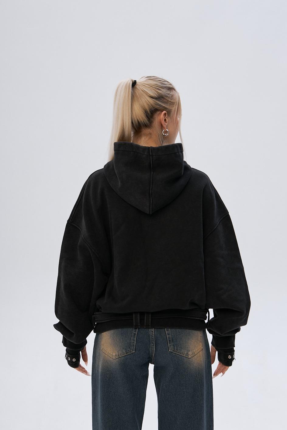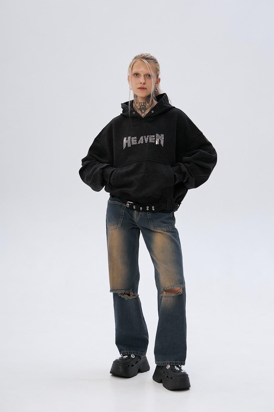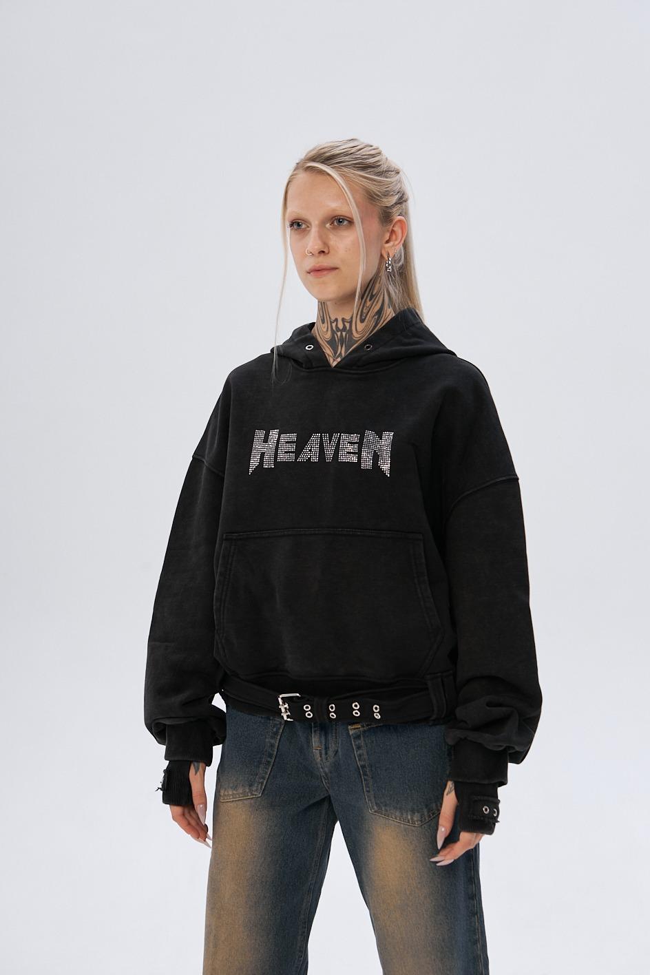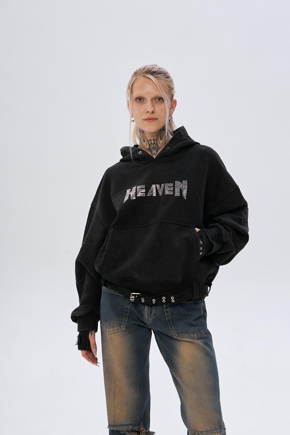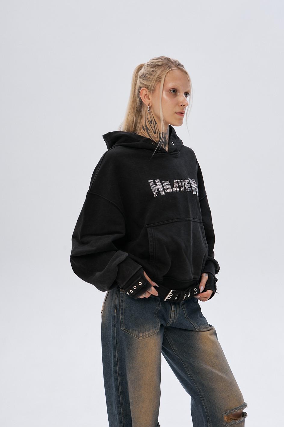 Женское Черное Худи Варенка Оверсайз с Надписью HEAVEN из Страз