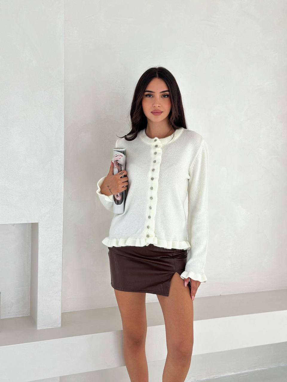 Женский Белый Кардиган на Пуговицах с Рюшами