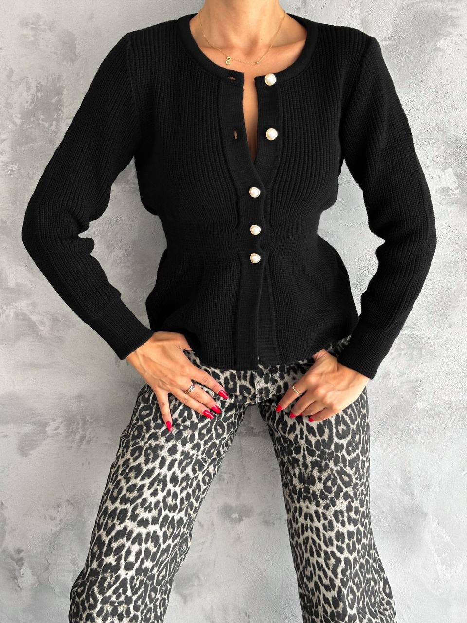 Женский Черный Вязаный Кардиган – Приталенный на Пуговицах