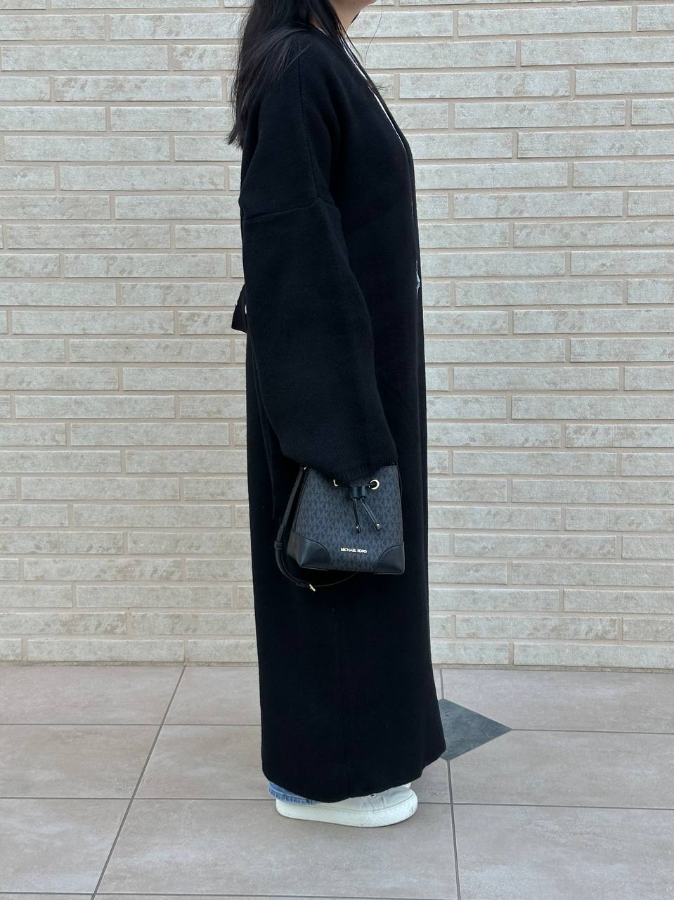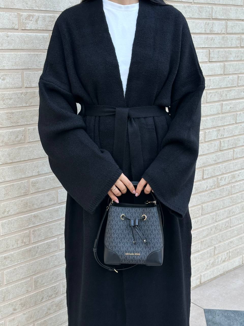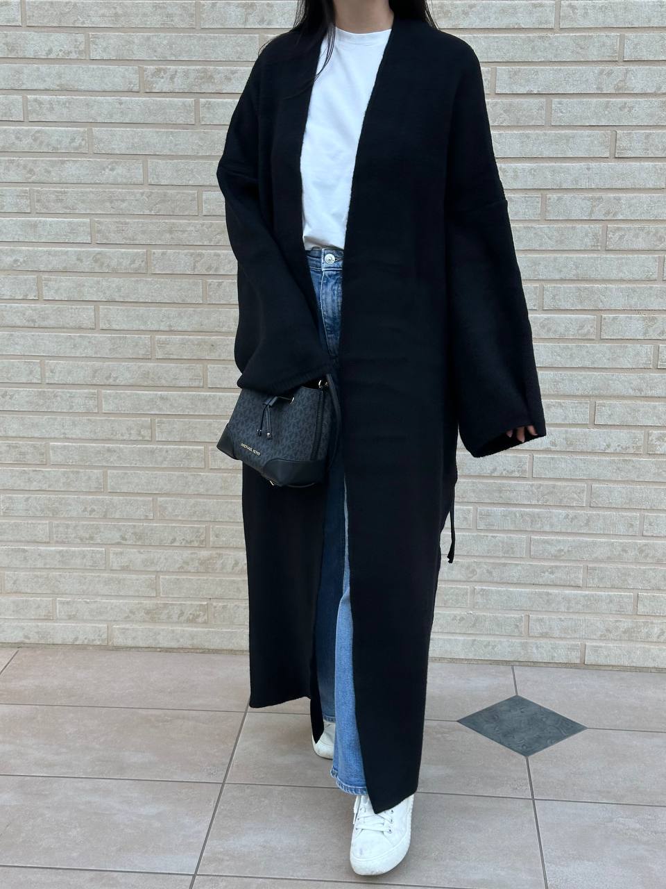 Женский Длинный Черный Кардиган Макси Свободного Кроя с Поясом