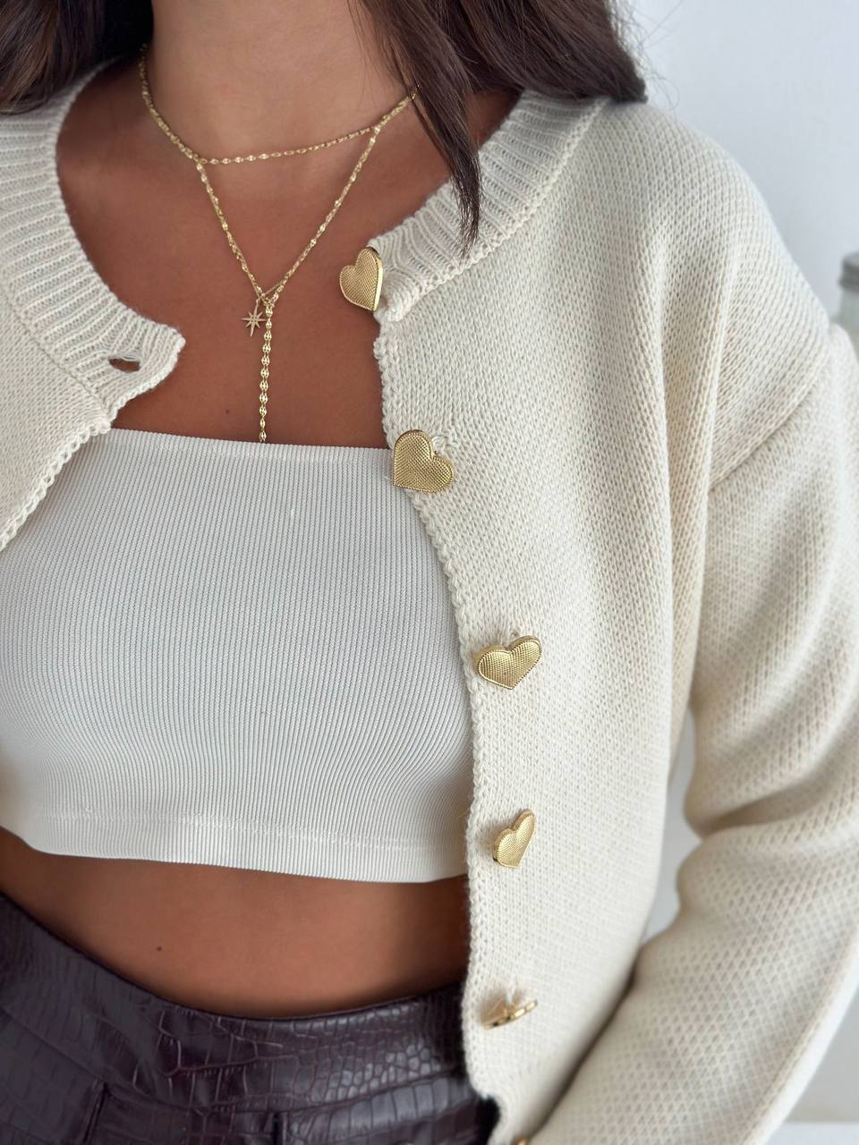 Женский Молочный Кардиган в Стиле Old Money – Кофта на Пуговицах в Виде Сердечек