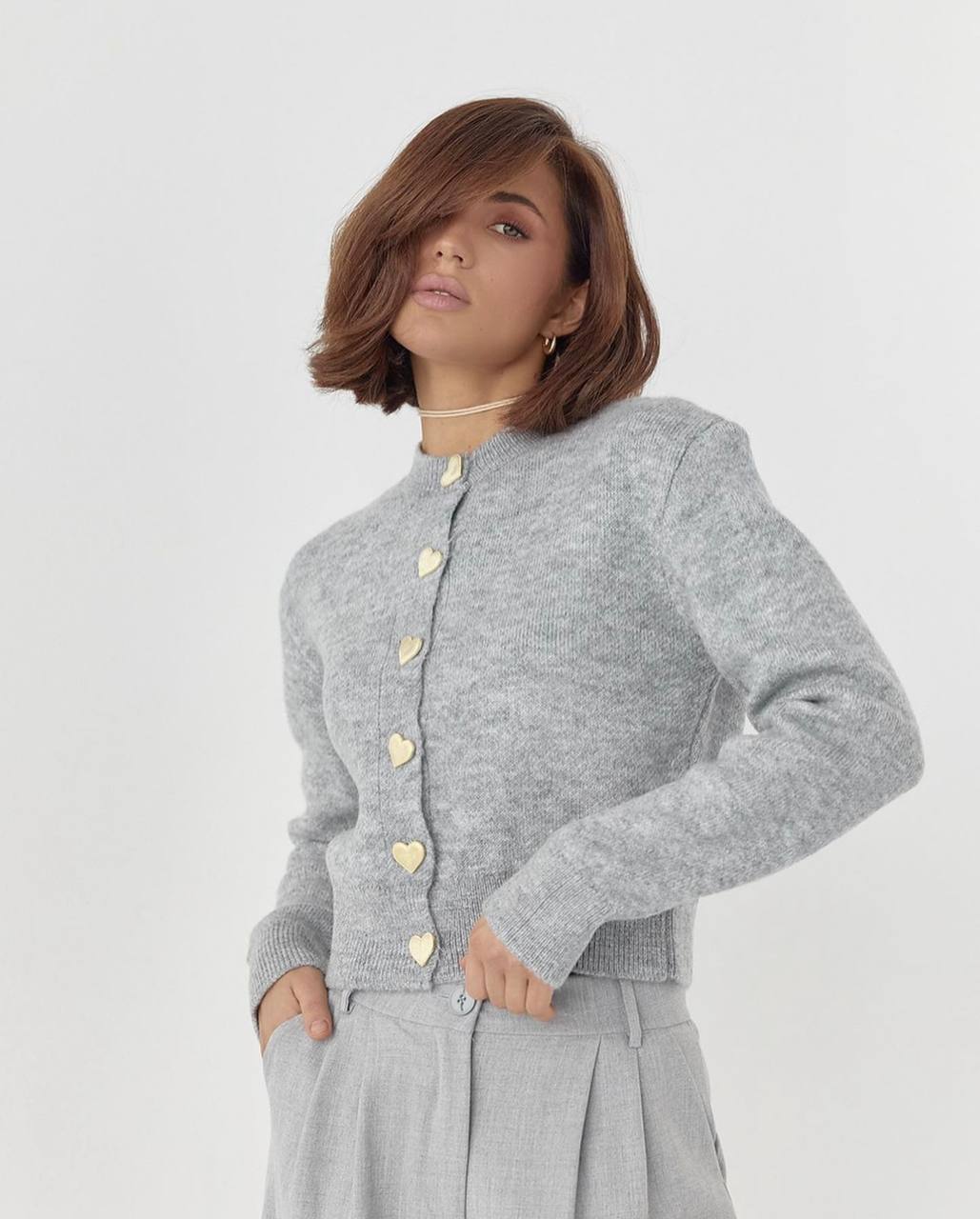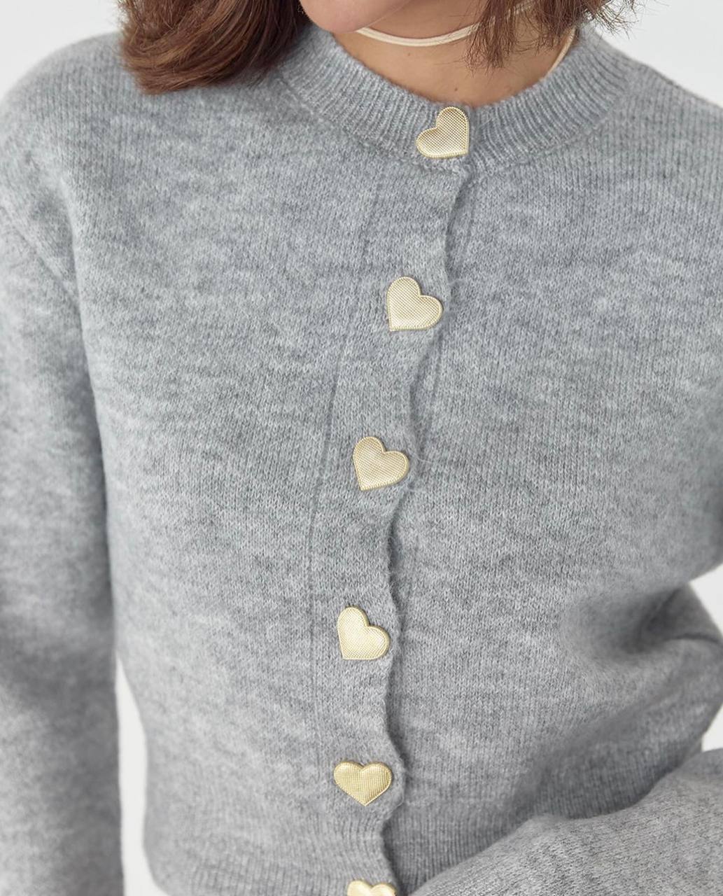 Главная Магазин Каталог Женское Кардиганы Женский Мягкий Базовый Серый Кардиган на Пуговицах с Сердечками