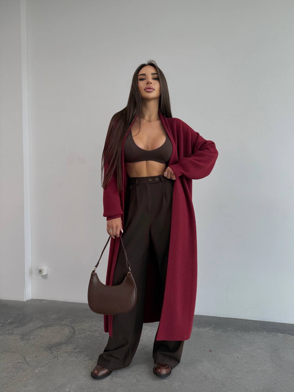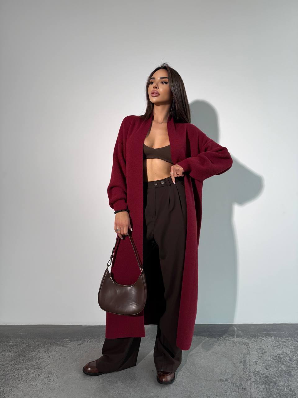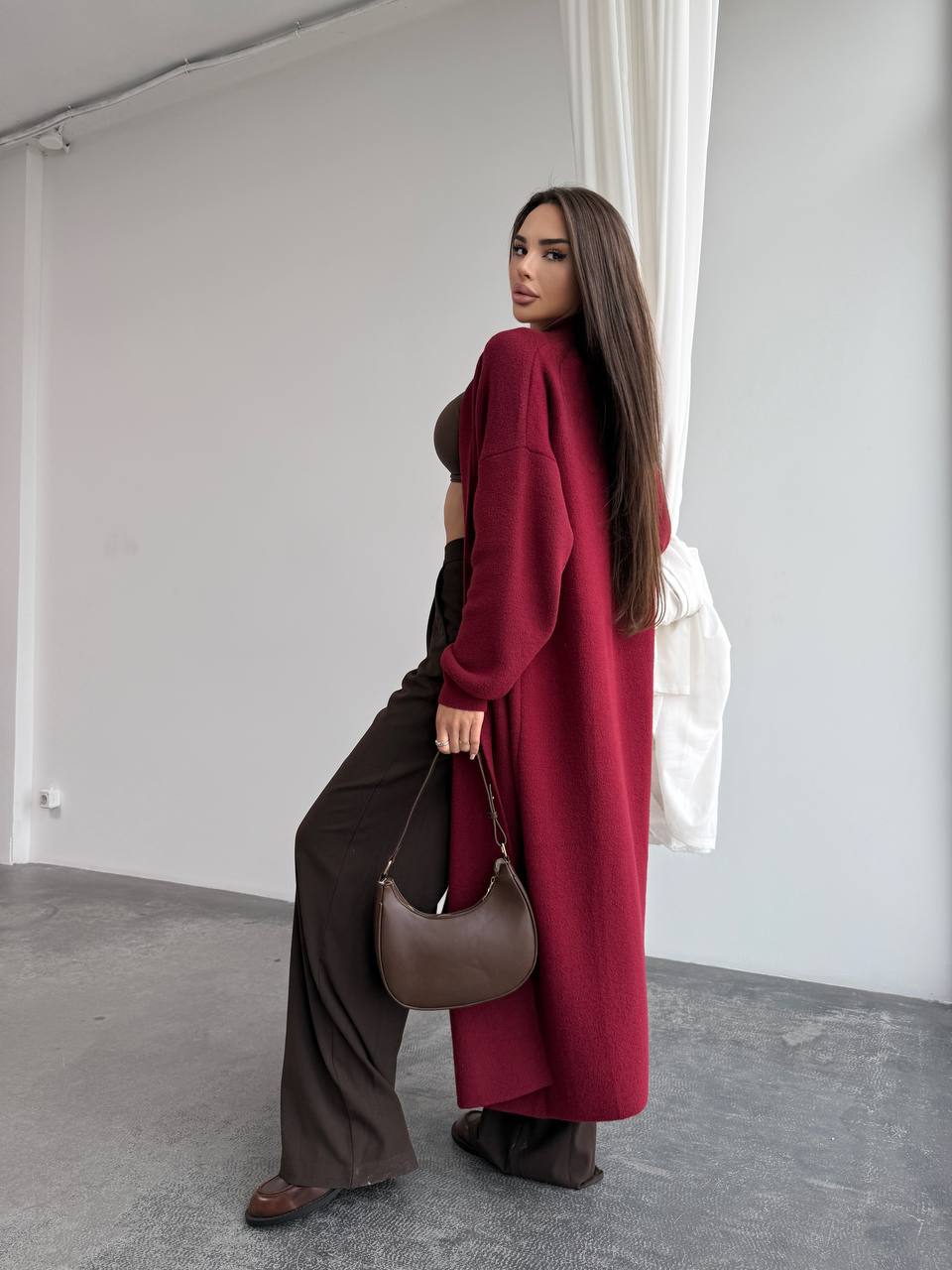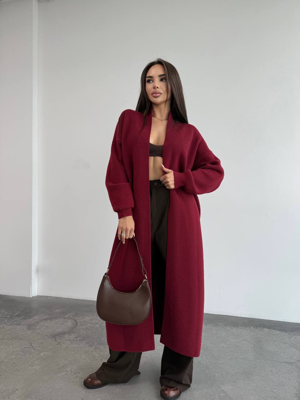 Женский Мягкий Длинный Бордовый Кардиган Свободного Кроя
