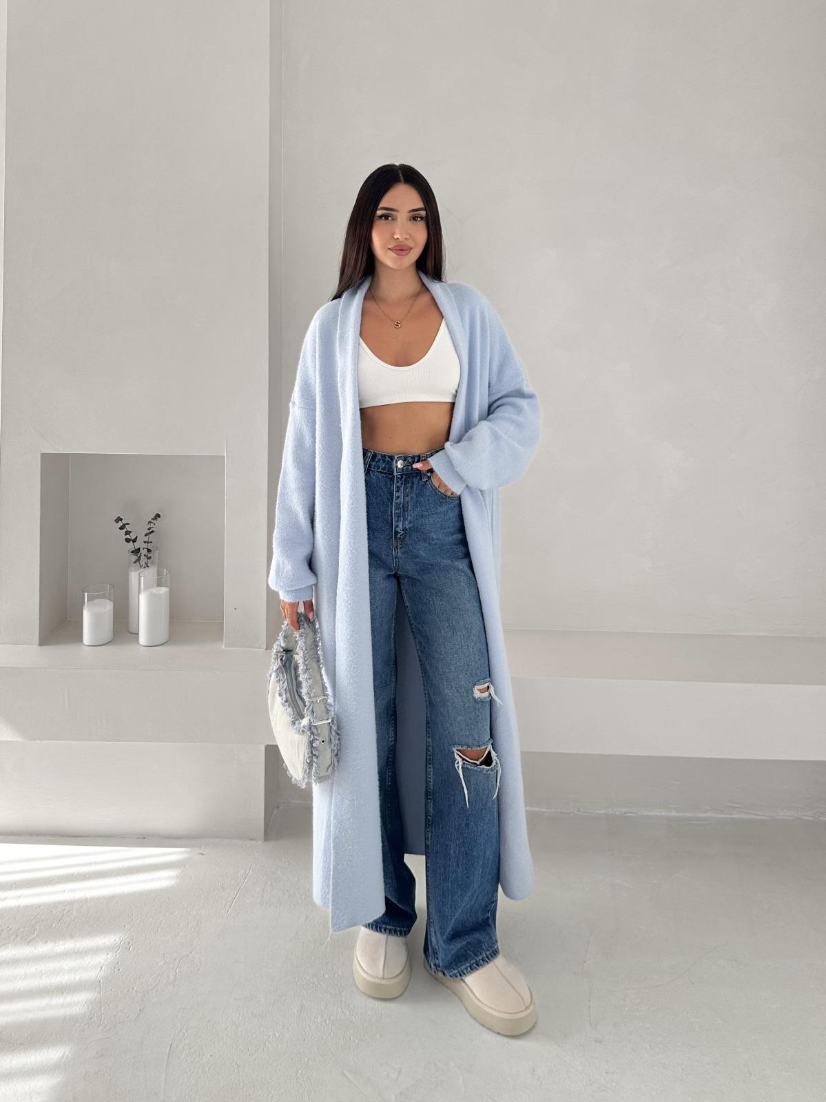Женский Пушистый Голубой Кардиган – Удлиненный Свободного Кроя