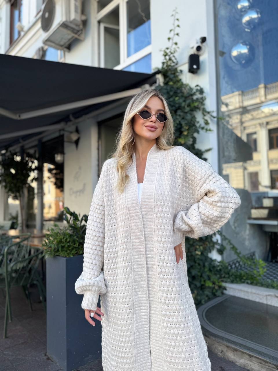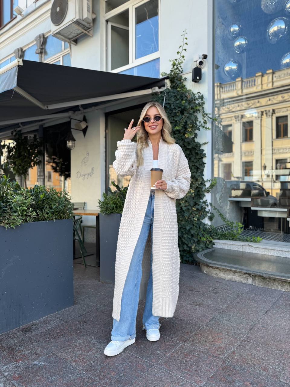 Женский Теплый Бежевый Кардиган – Удлиненный Свободного Кроя