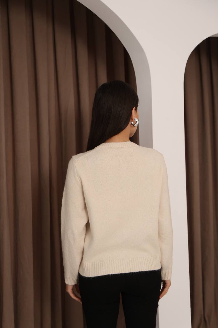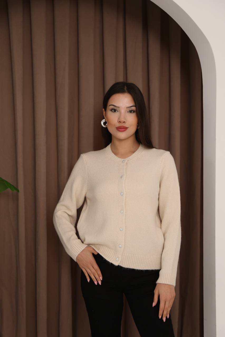 Женский Теплый Классический Молочный Кардиган с Пуговицами в Виде Сердец