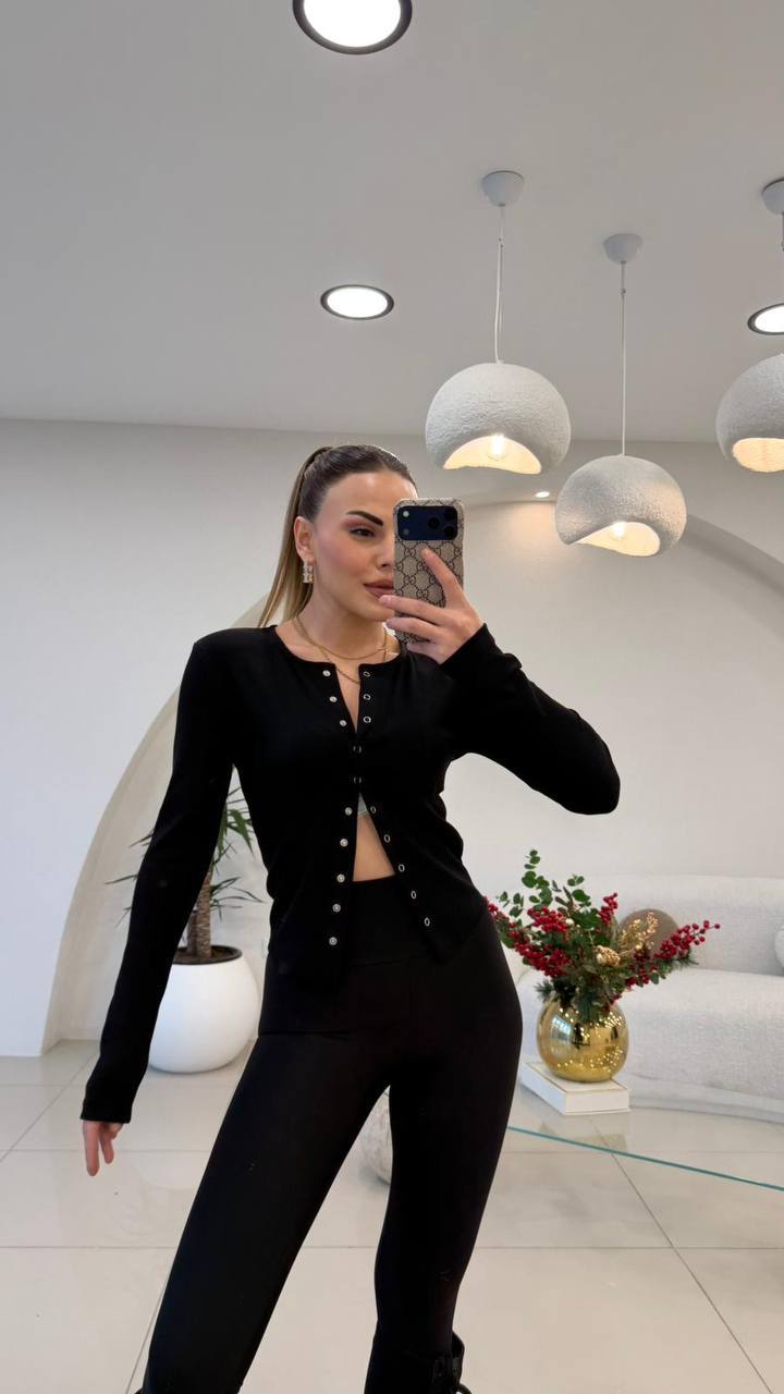 Женская Базовая Приталенная Черная Кофта на Кнопках