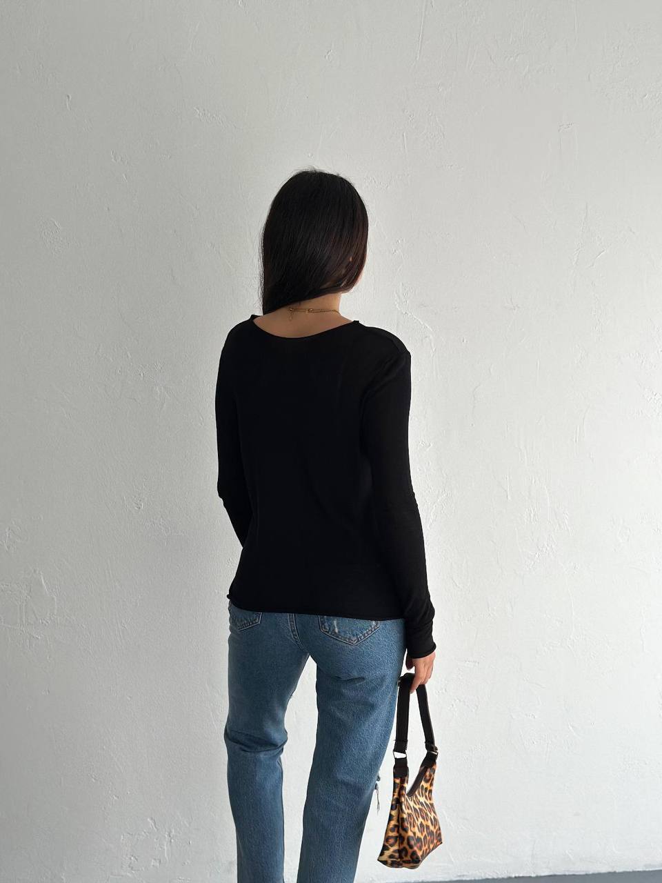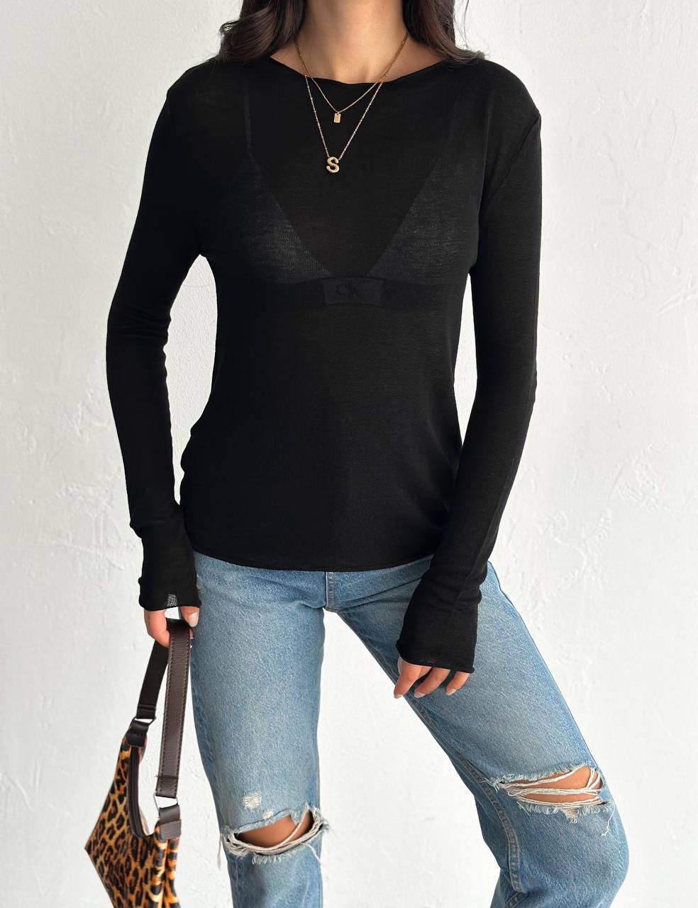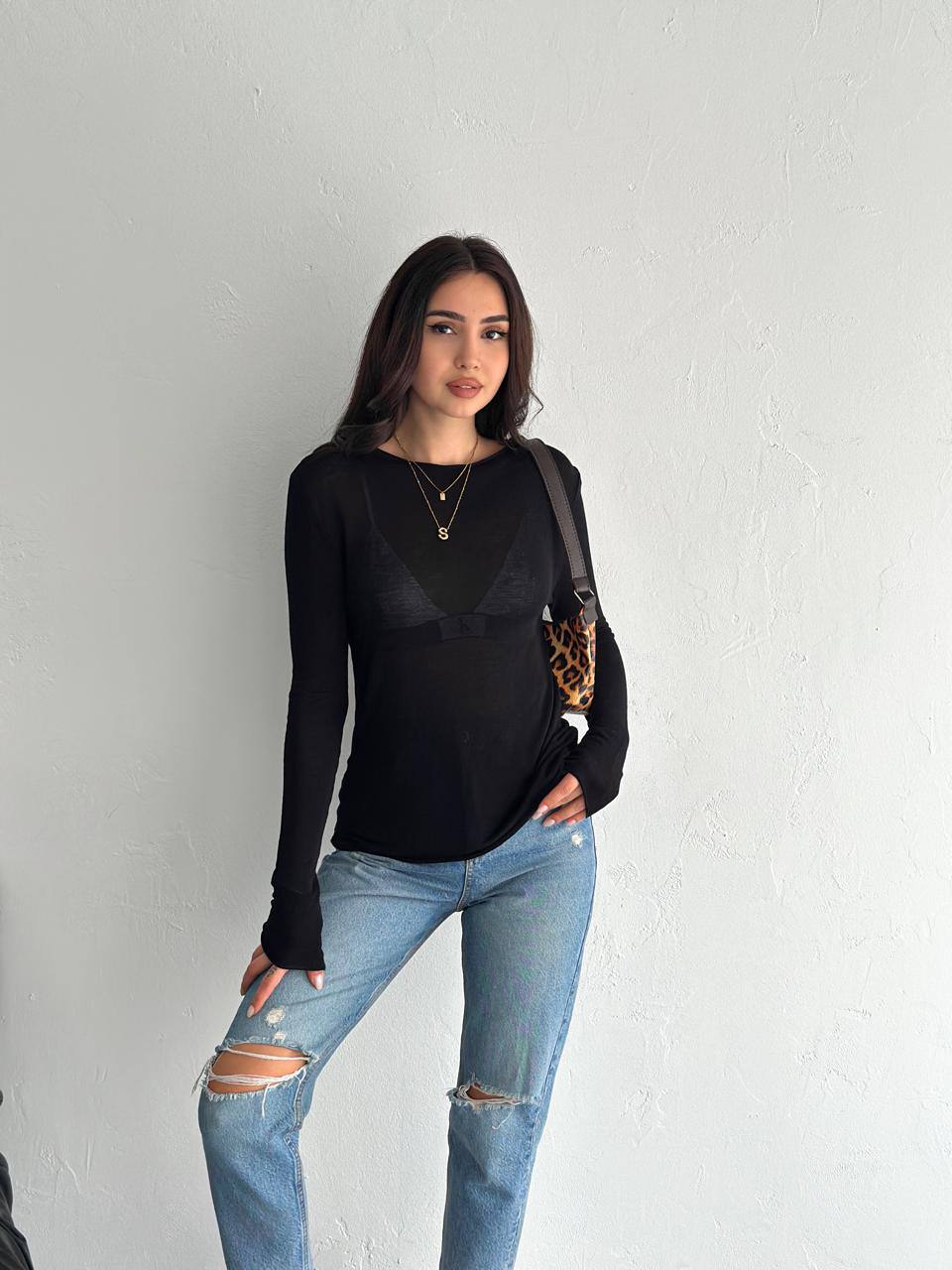 Женская Тонкая Полупрозрачная Черная Кофта Лонгслив с Длинными Рукавами