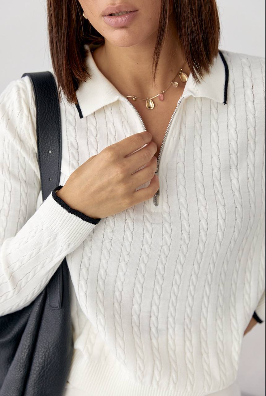 Женская Трикотажная Белая Кофта Поло Косичка с Окантовкой