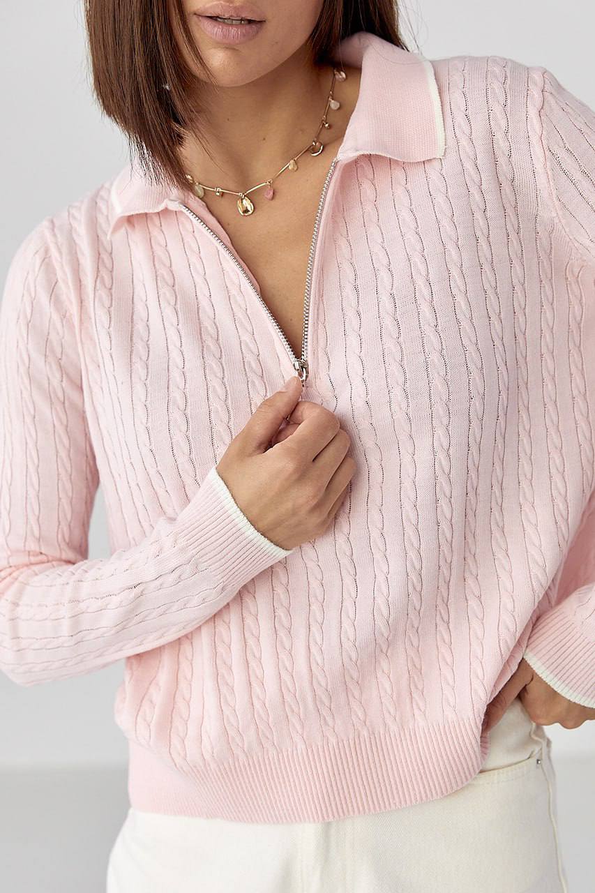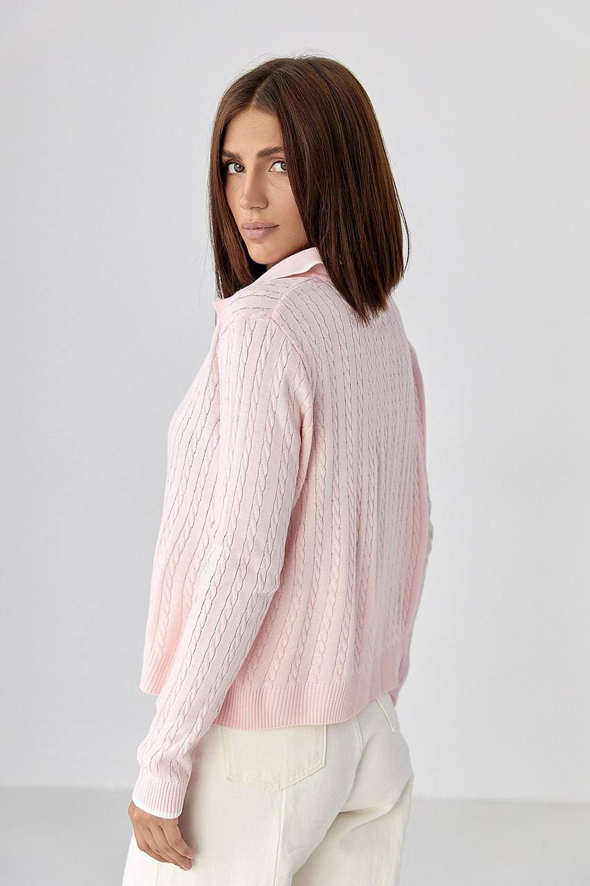 Женская Трикотажная Розовая Кофта Поло Косичка с Окантовкой