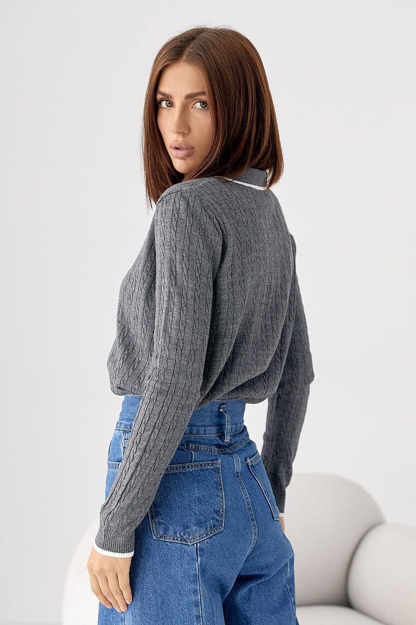 Женская Трикотажная Серая Кофта Поло Косичка с Окантовкой