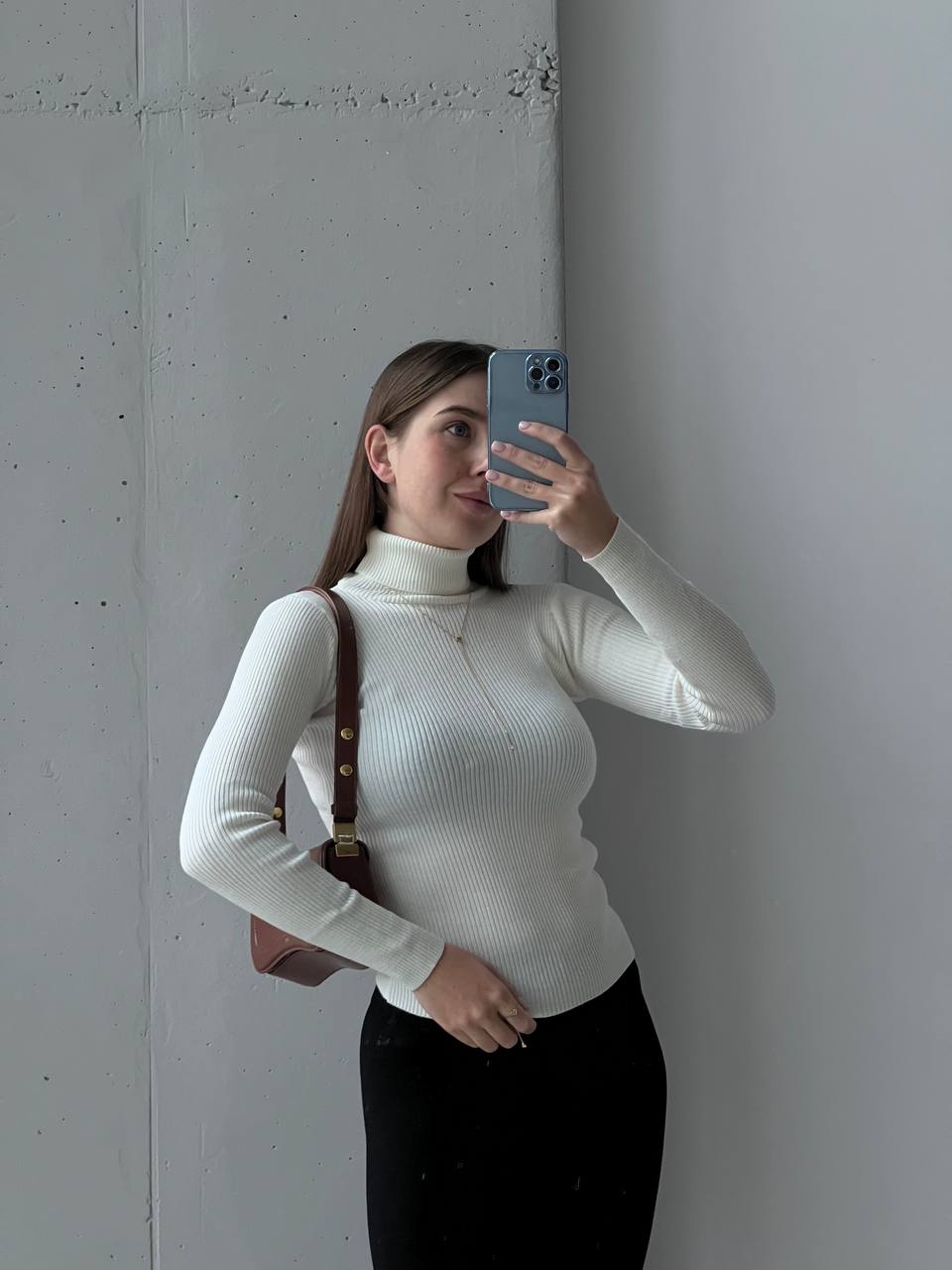 Женский Белый Гольф с Двойным Горлом Воротником – Облегающая Кофта Водолазка