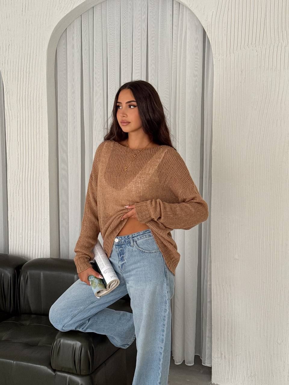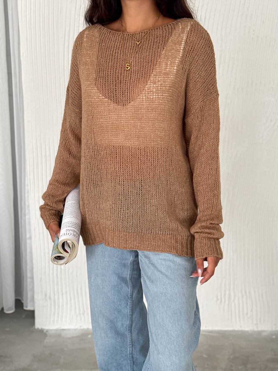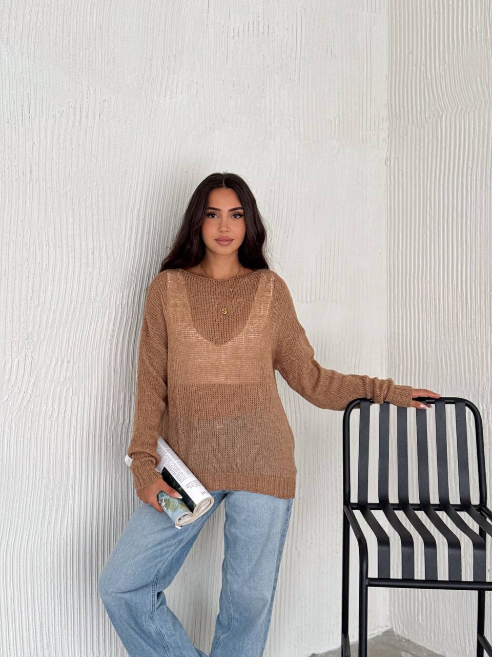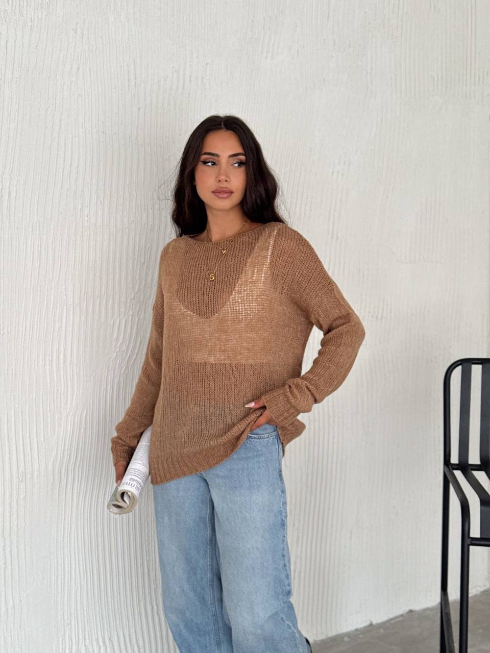 Женский Джемпер Мокко Оверсайз – Трикотажный в Сеточку
