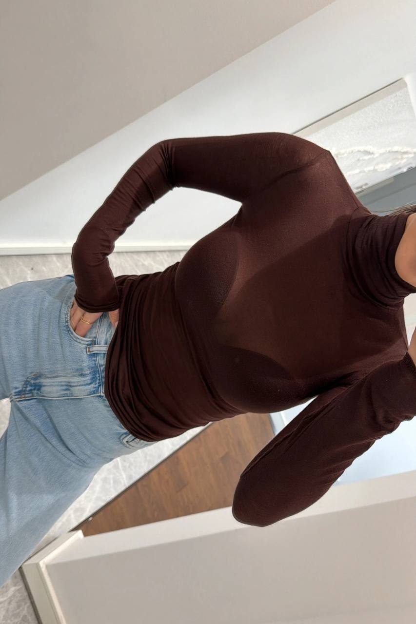 Женский Полупрозрачный Коричневый Гольф с Высокой Горловиной