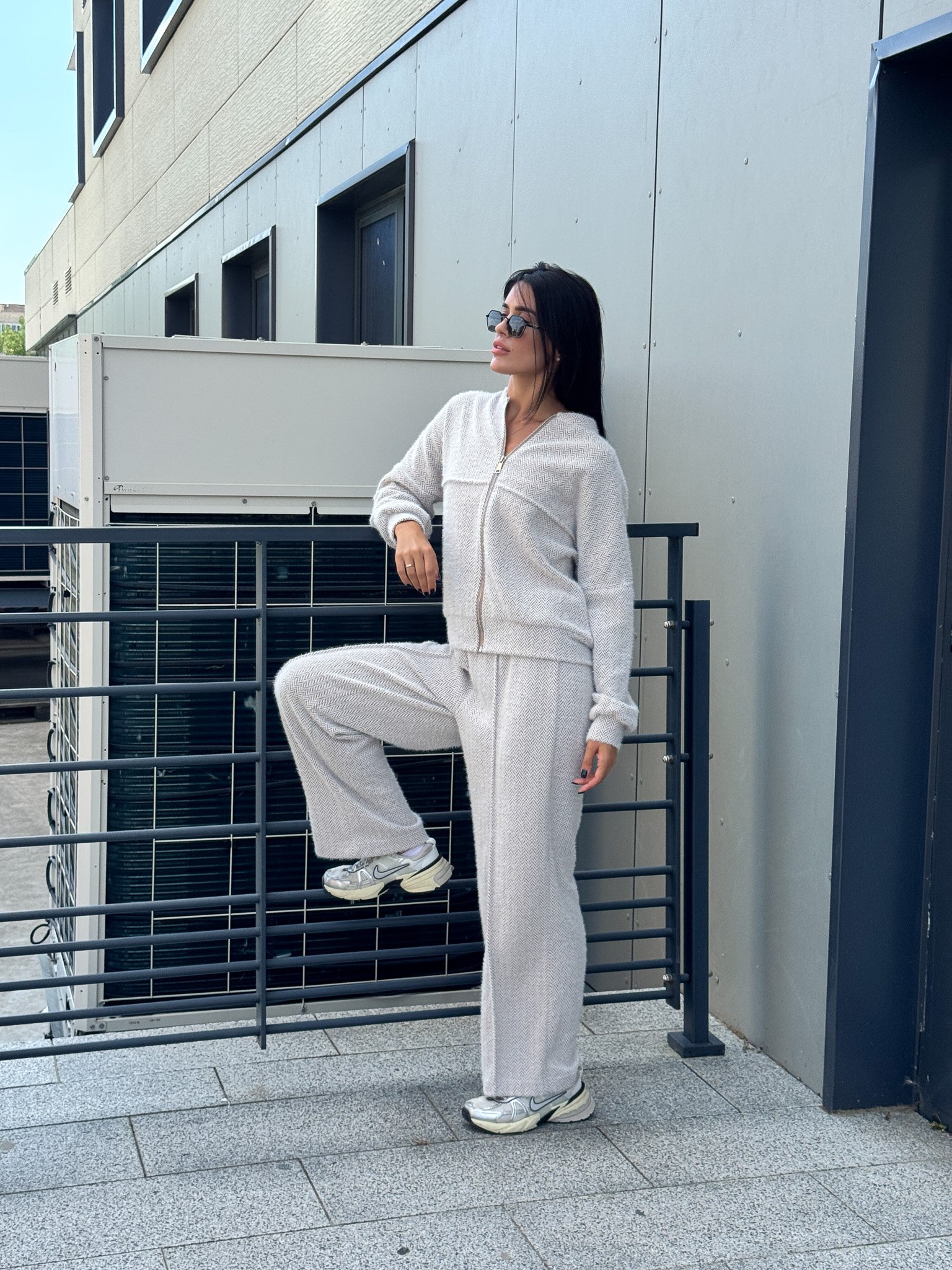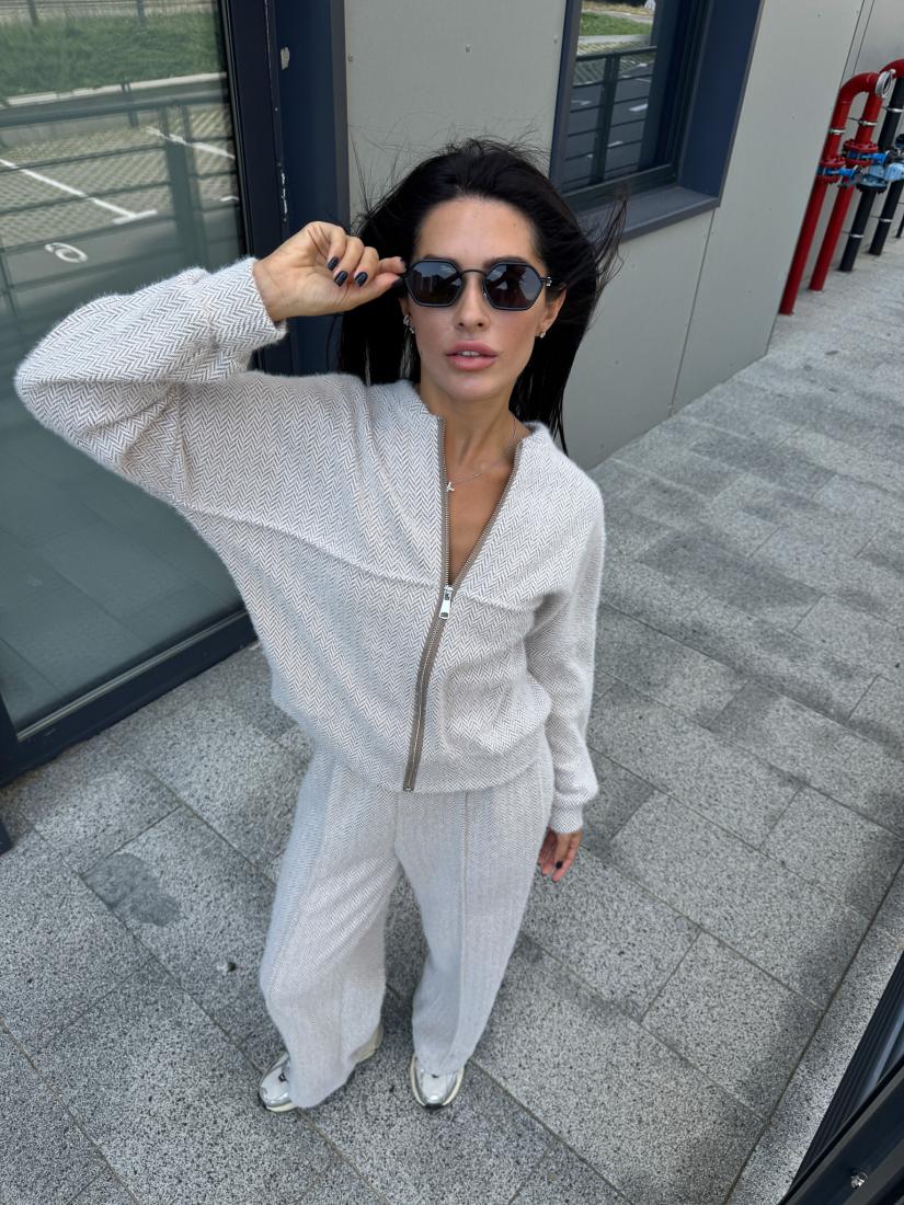 Женский Базовый Костюм Мокко – Кофта Бомбер на Молнии + Широкие Штаны