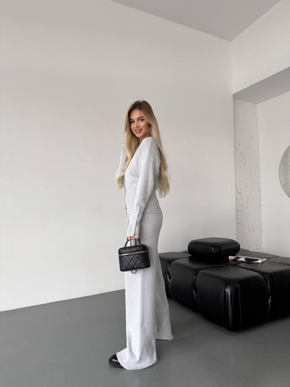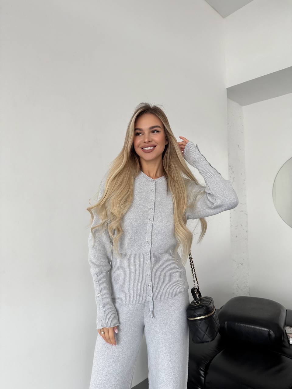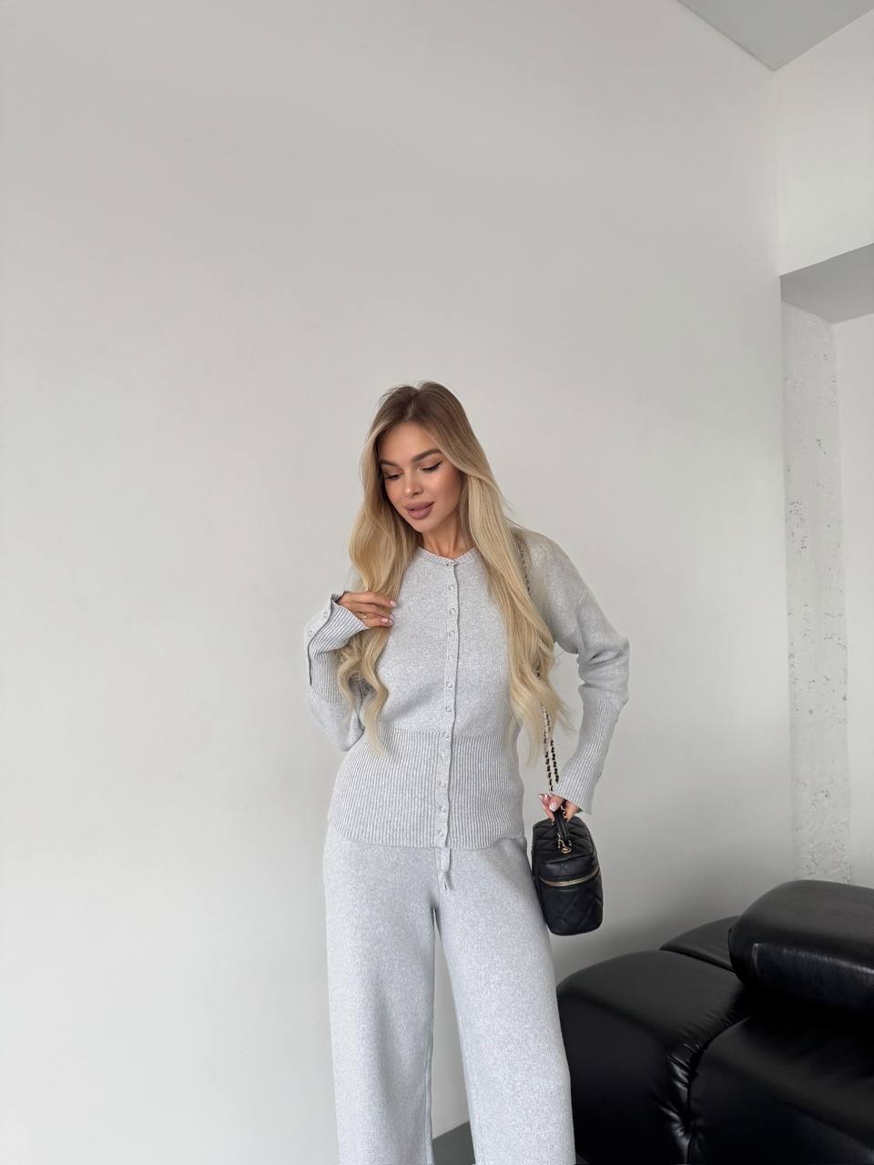 Женский Базовый Серый Костюм Трикотажный – Кофта на Кнопках + Штаны Свободного Кроя
