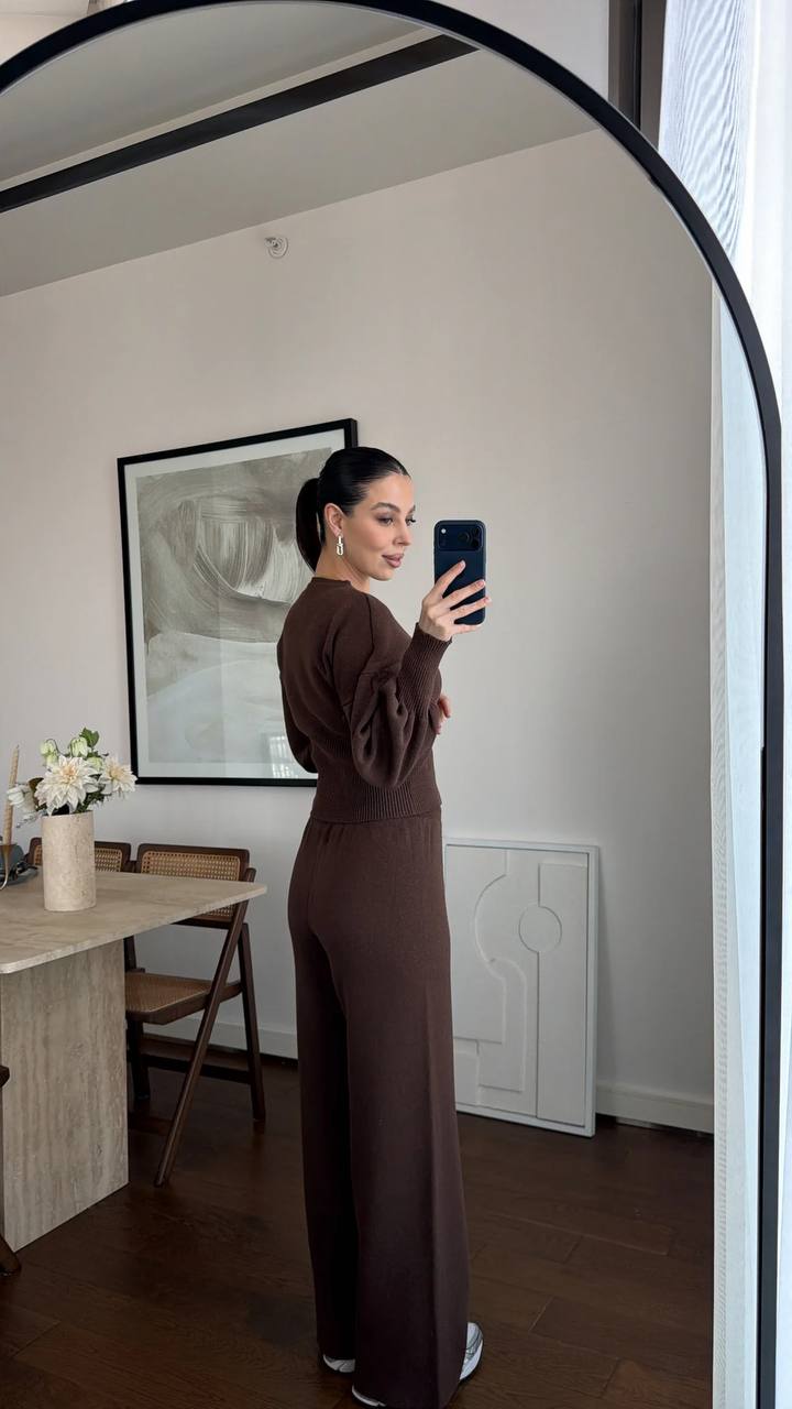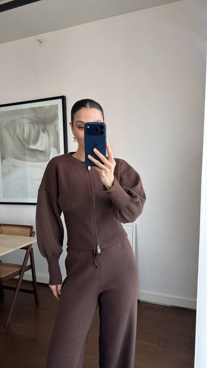 Женский Базовый Трикотажный Коричневый Костюм на Молнии (Кофта + Штаны)