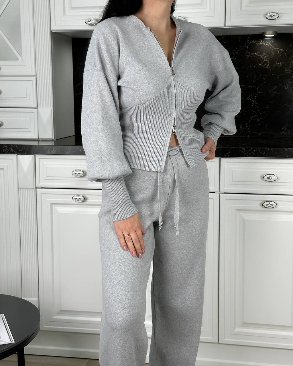 Женский Базовый Трикотажный Серый Костюм на Молнии (Кофта + Штаны)