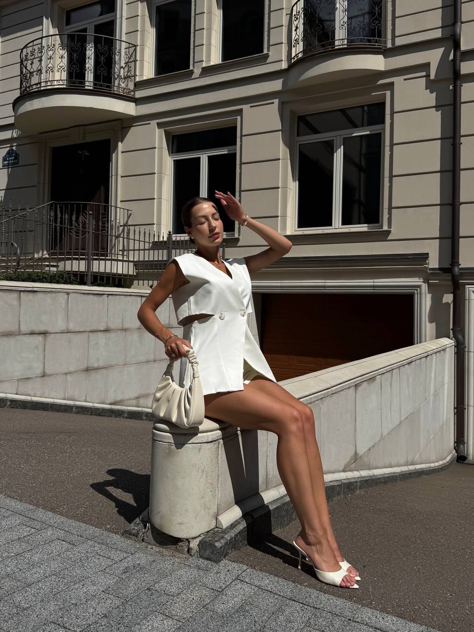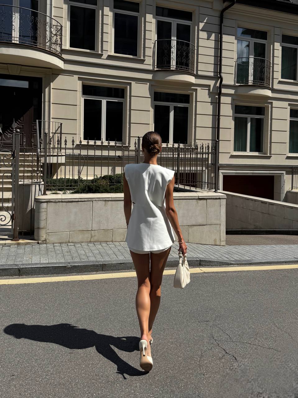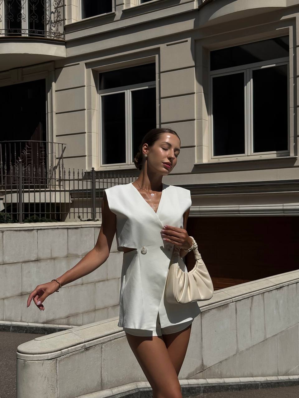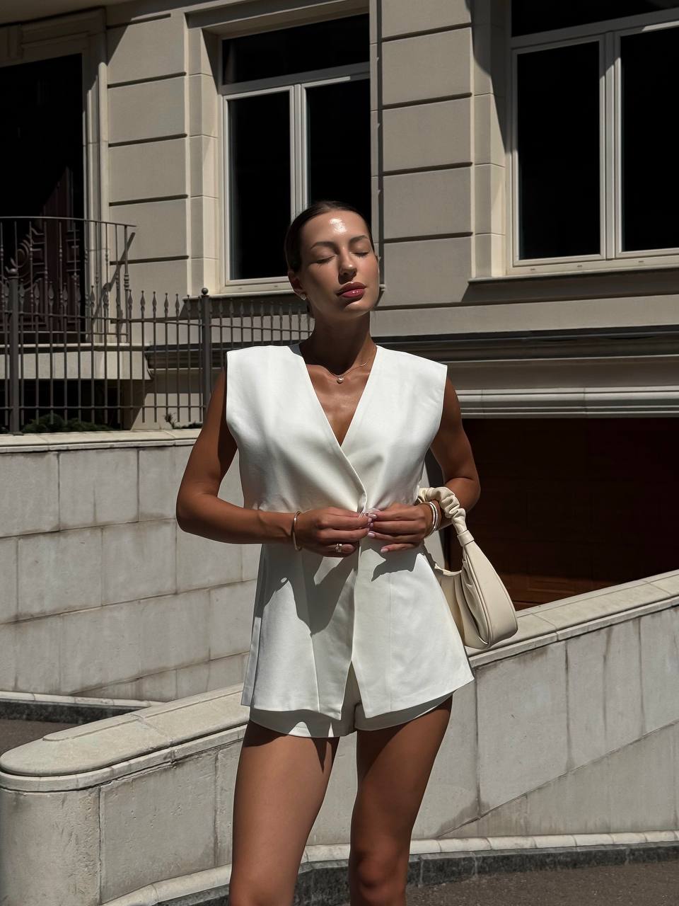 Женский Белый Костюм с Разрезами на Талии (Жилетка + Шорты)