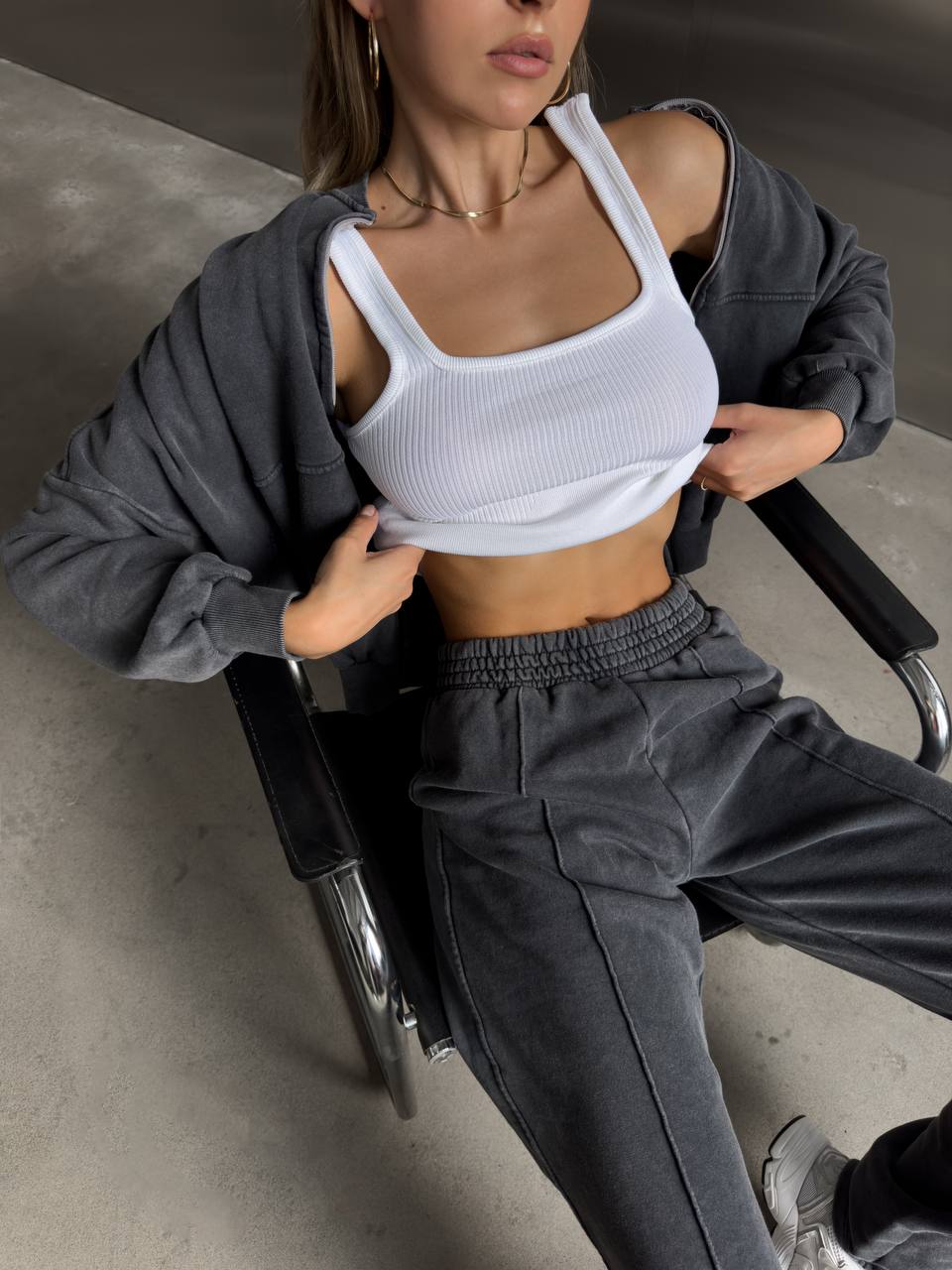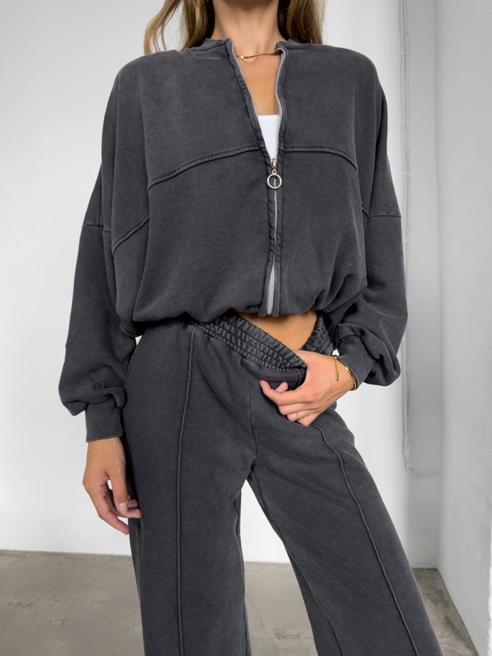 Главная Магазин Каталог Женское Костюмы Casual Женский Графитовый Костюм Варенка – Кофта на Молнии + Широкие Штаны