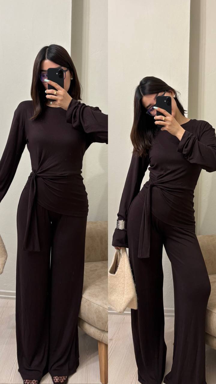 Женский Легкий Коричневый Костюм – Кофта с Завязкой + Свободные Штаны