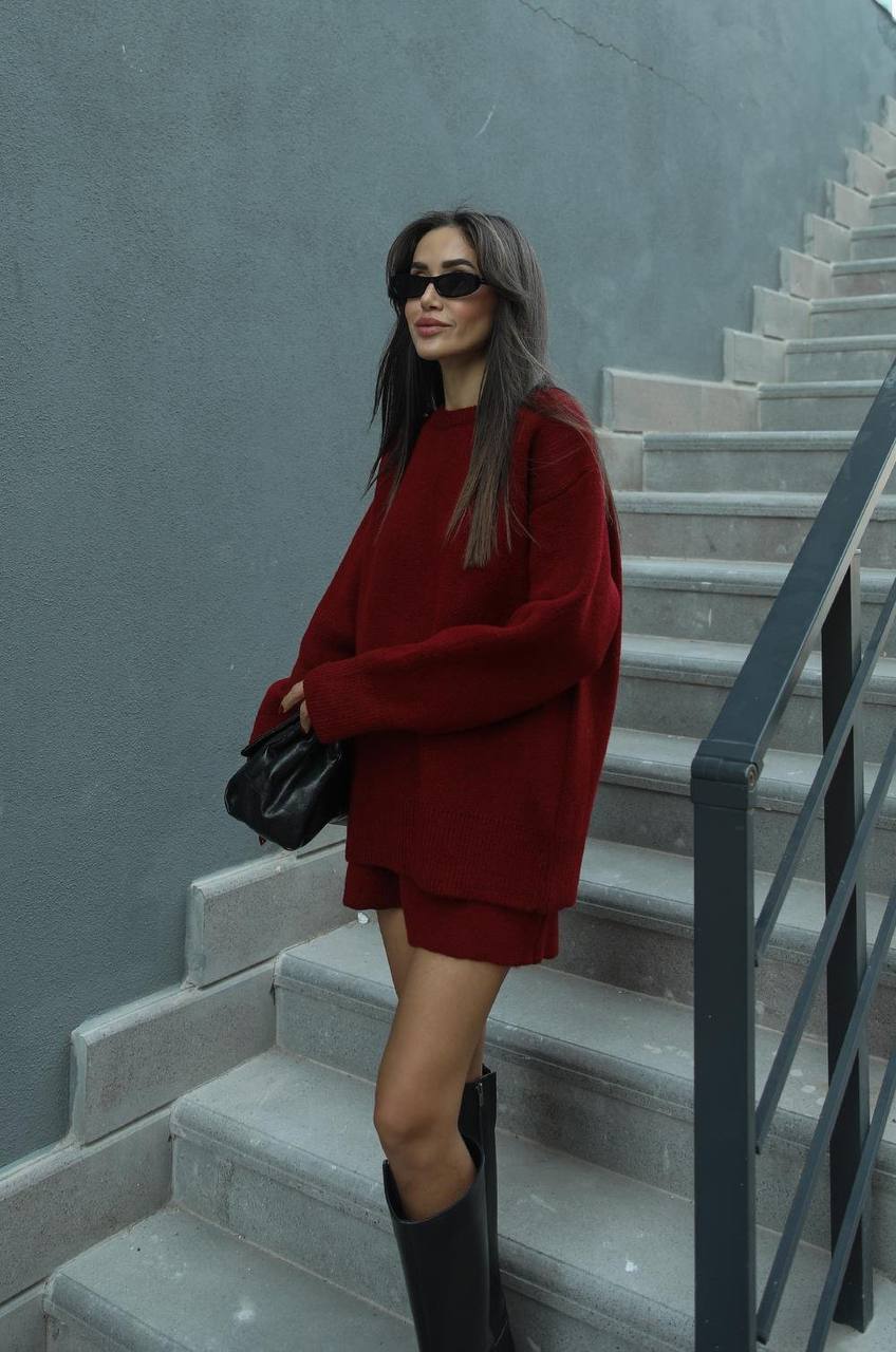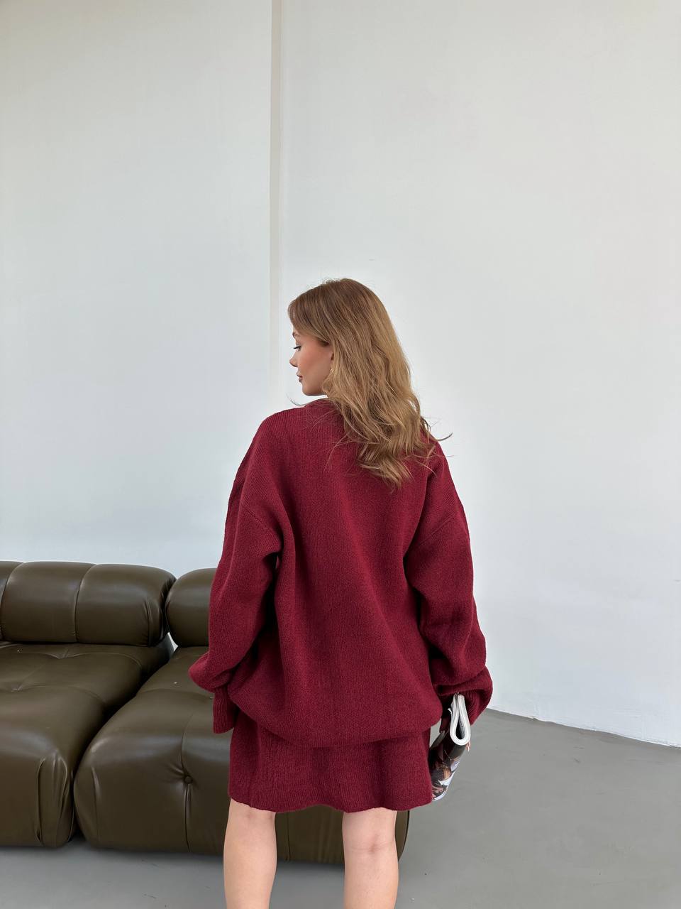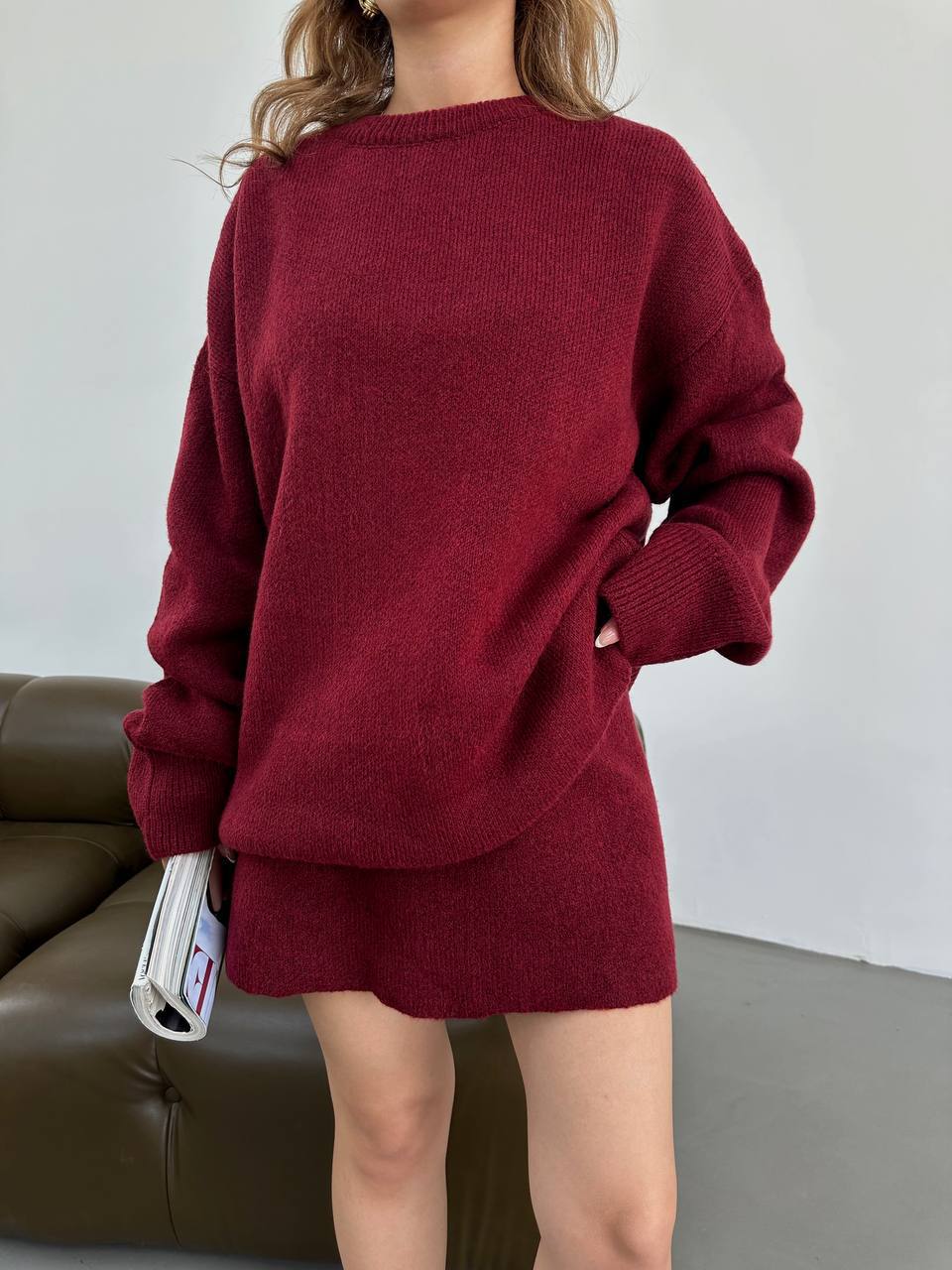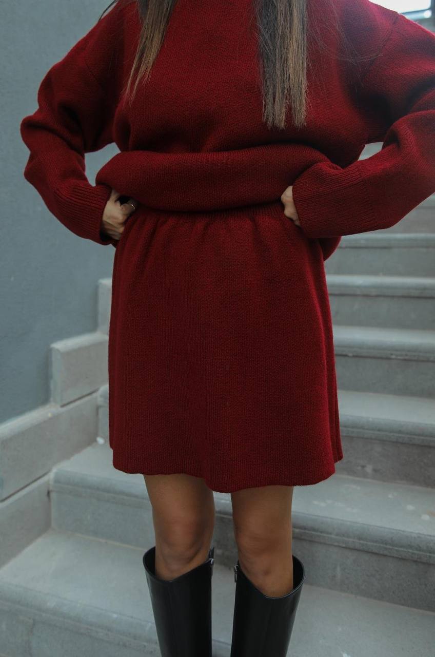 Женский Теплый Бордовый Костюм Двойка – Комплект Свитер Юбка