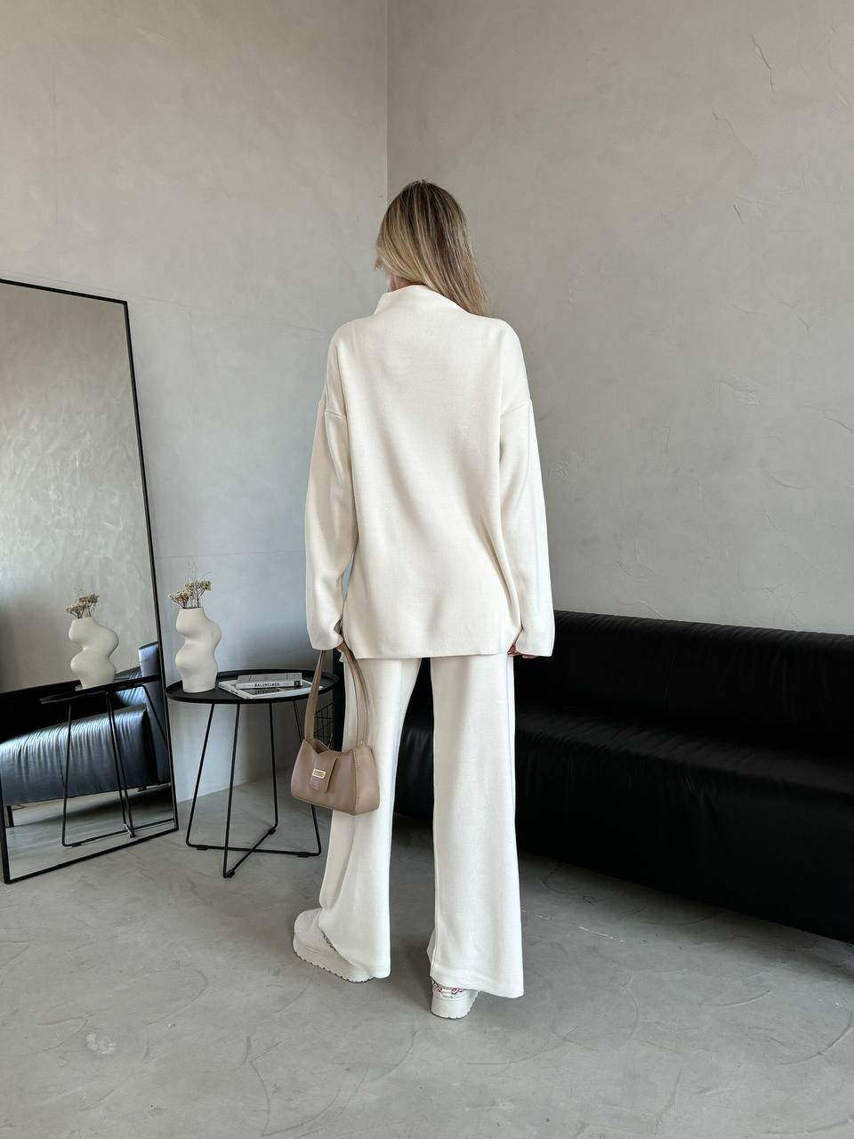 Женский Трикотажный Базовый Молочный Костюм Свободного Кроя – Комплект Свитер Штаны