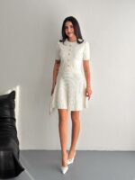 Женский Трикотажный Белый Костюм – Футболка с Бантиками + Юбка Трапеция Мини Плиссе