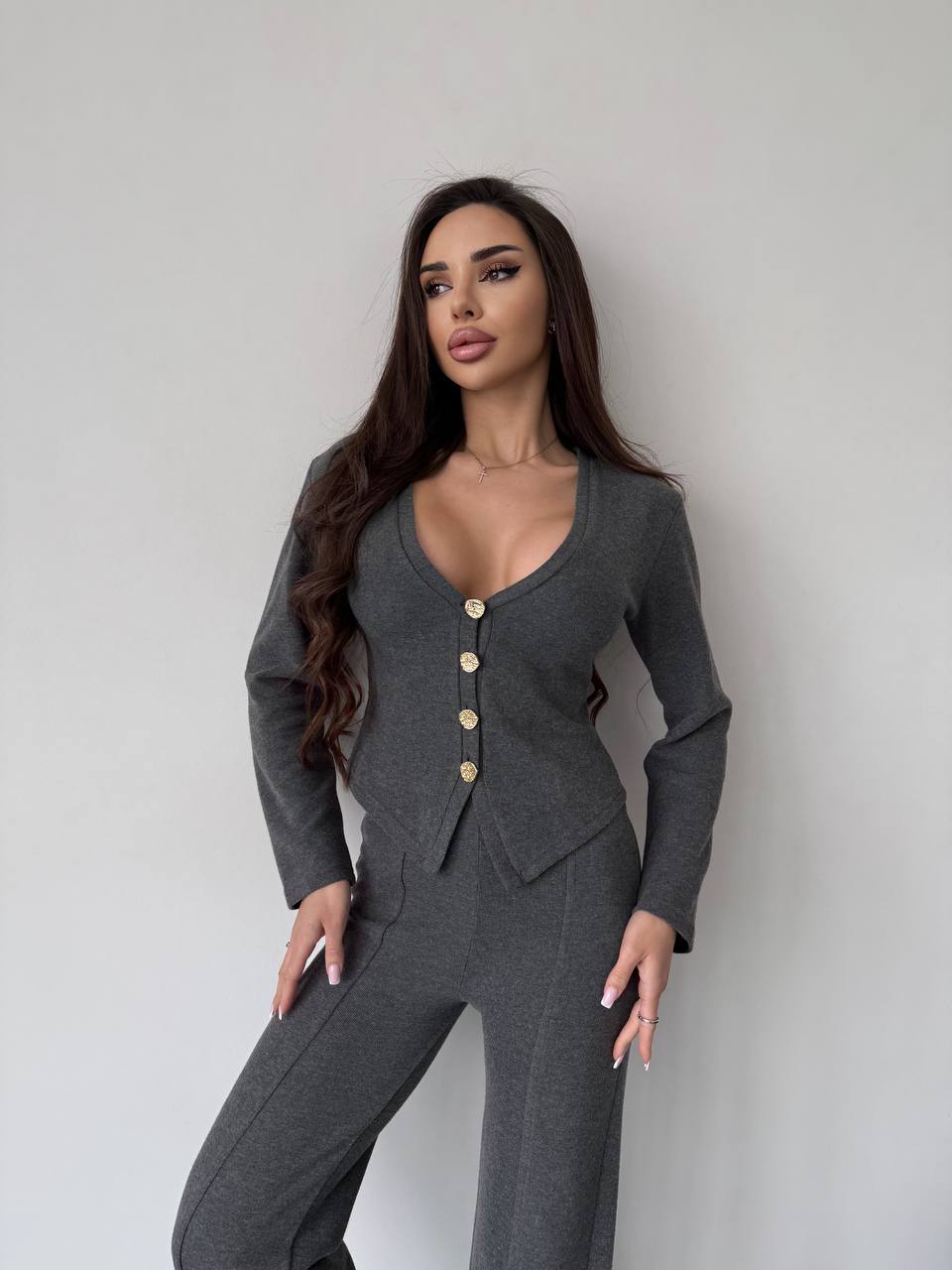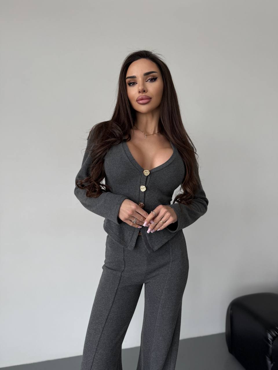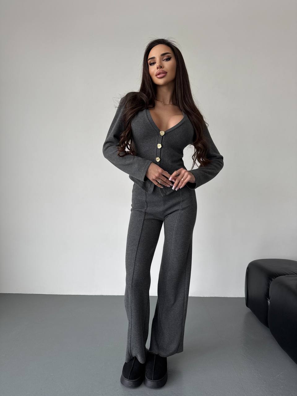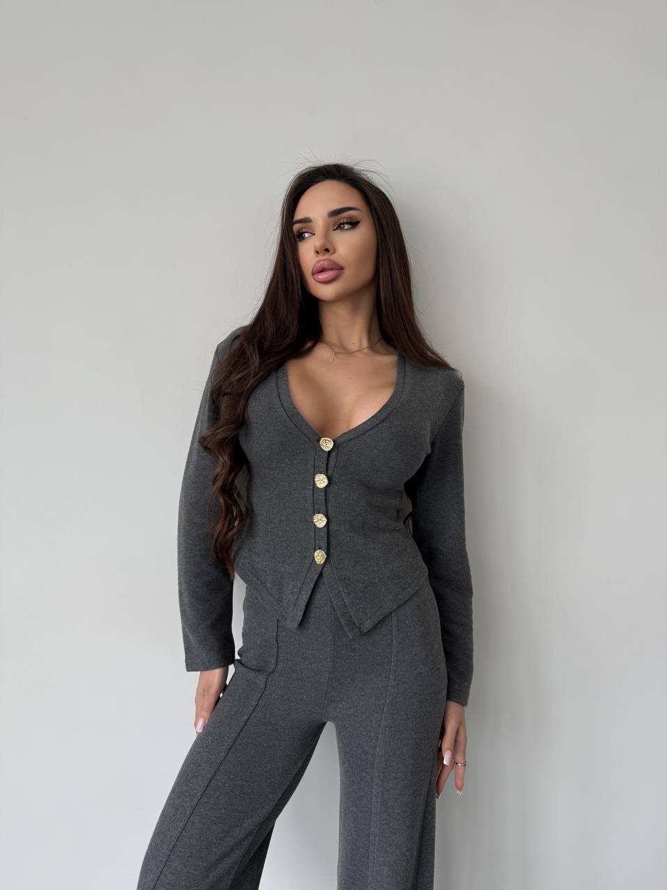 Женский Трикотажный Графитовый Костюм – Приталенный Кардиган + Штаны Прямого Кроя
