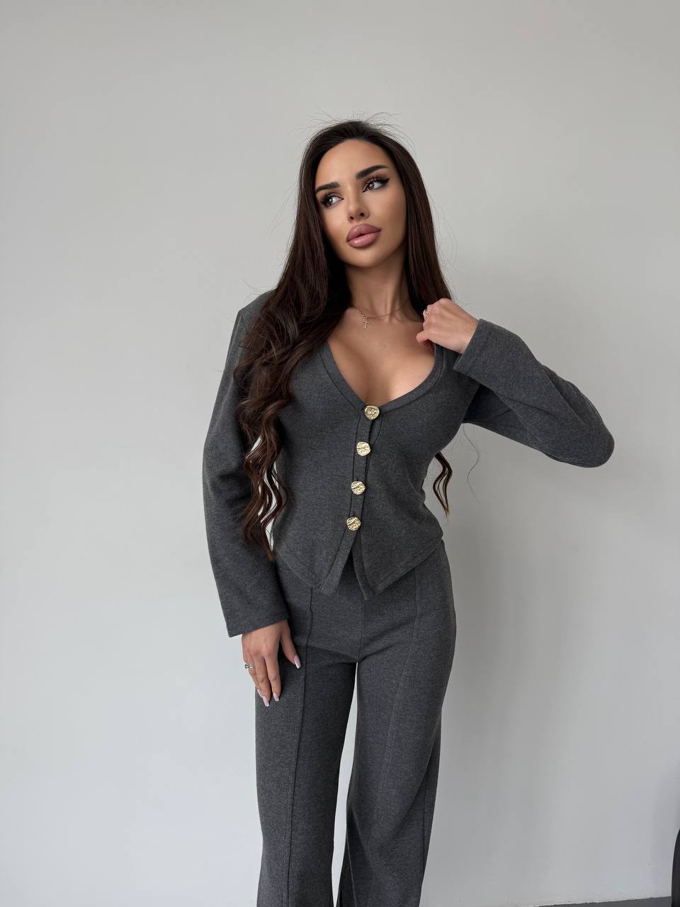 Главная Магазин Каталог Женское Костюмы Casual Женский Трикотажный Графитовый Костюм – Приталенный Кардиган + Штаны Прямого Кроя