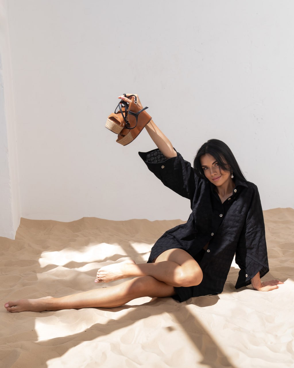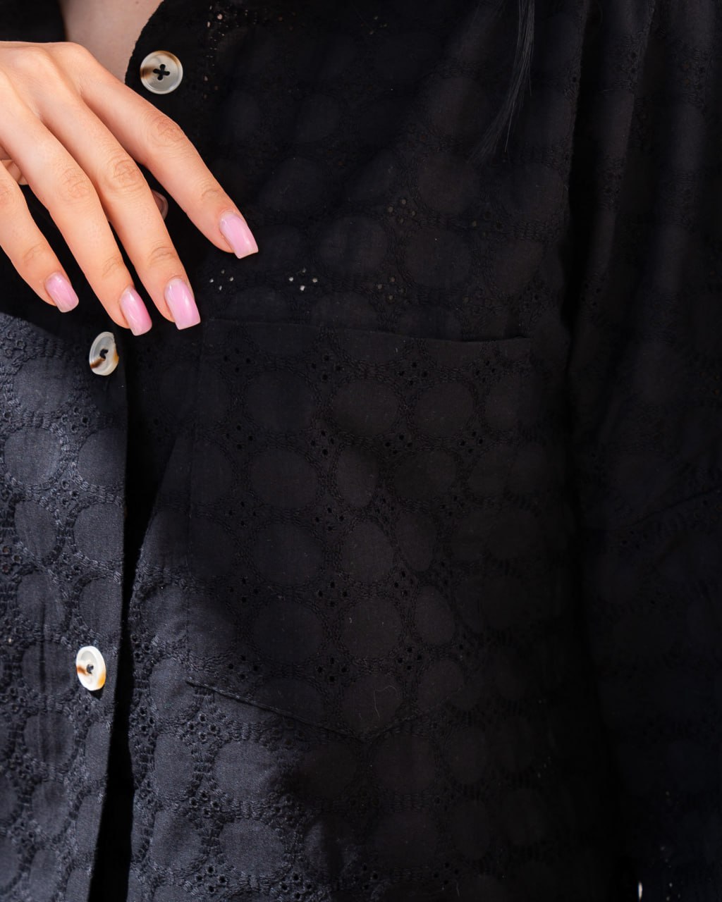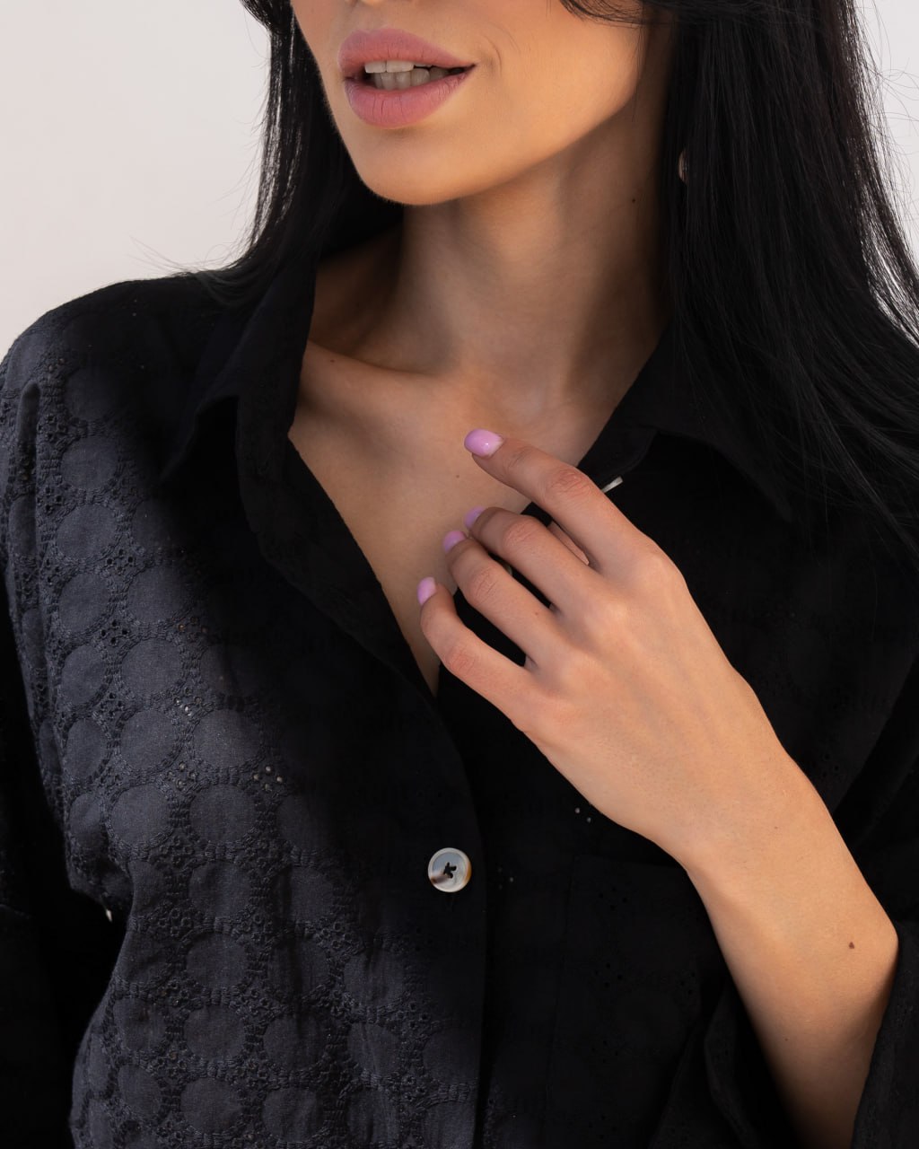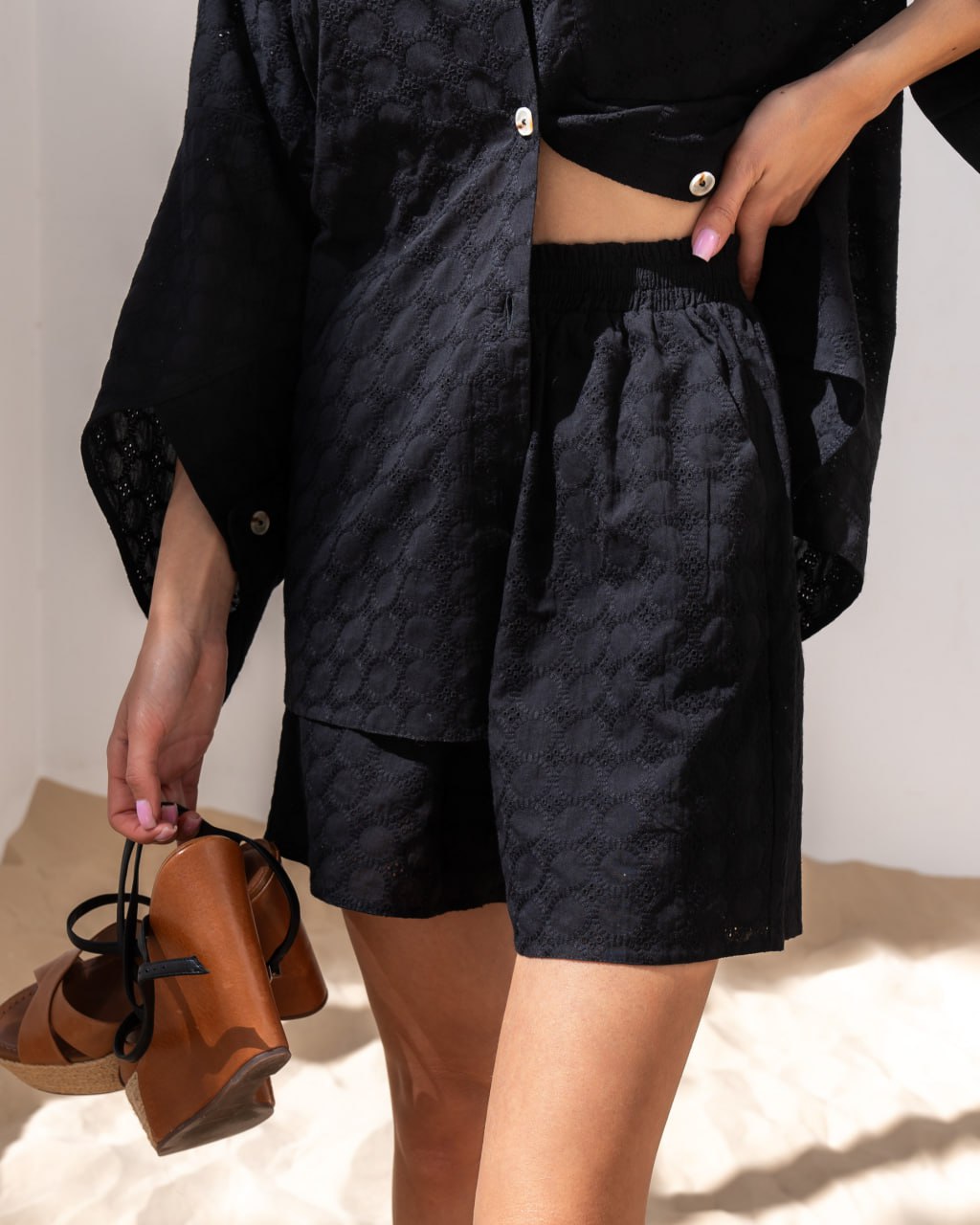 Женский Летний Черный Костюм Тандем из Прошвы (Рубашка + Шорты)
