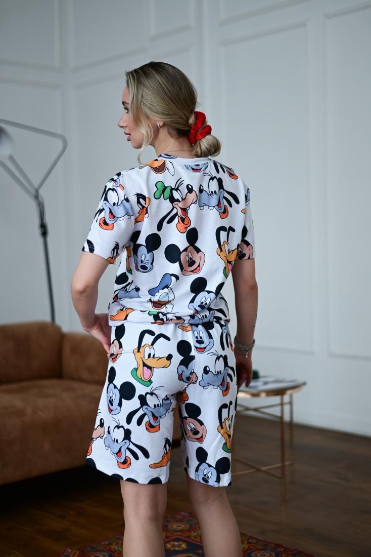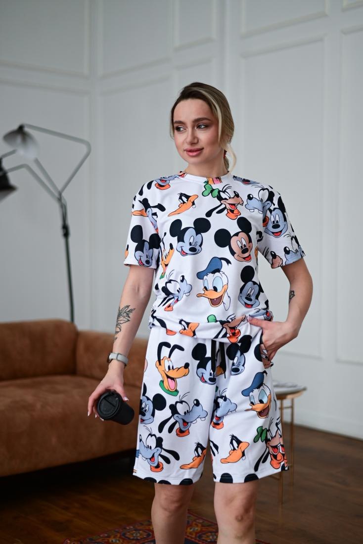 Женский Свободный Белый Летний Костюм Футболка Шорты в Принт