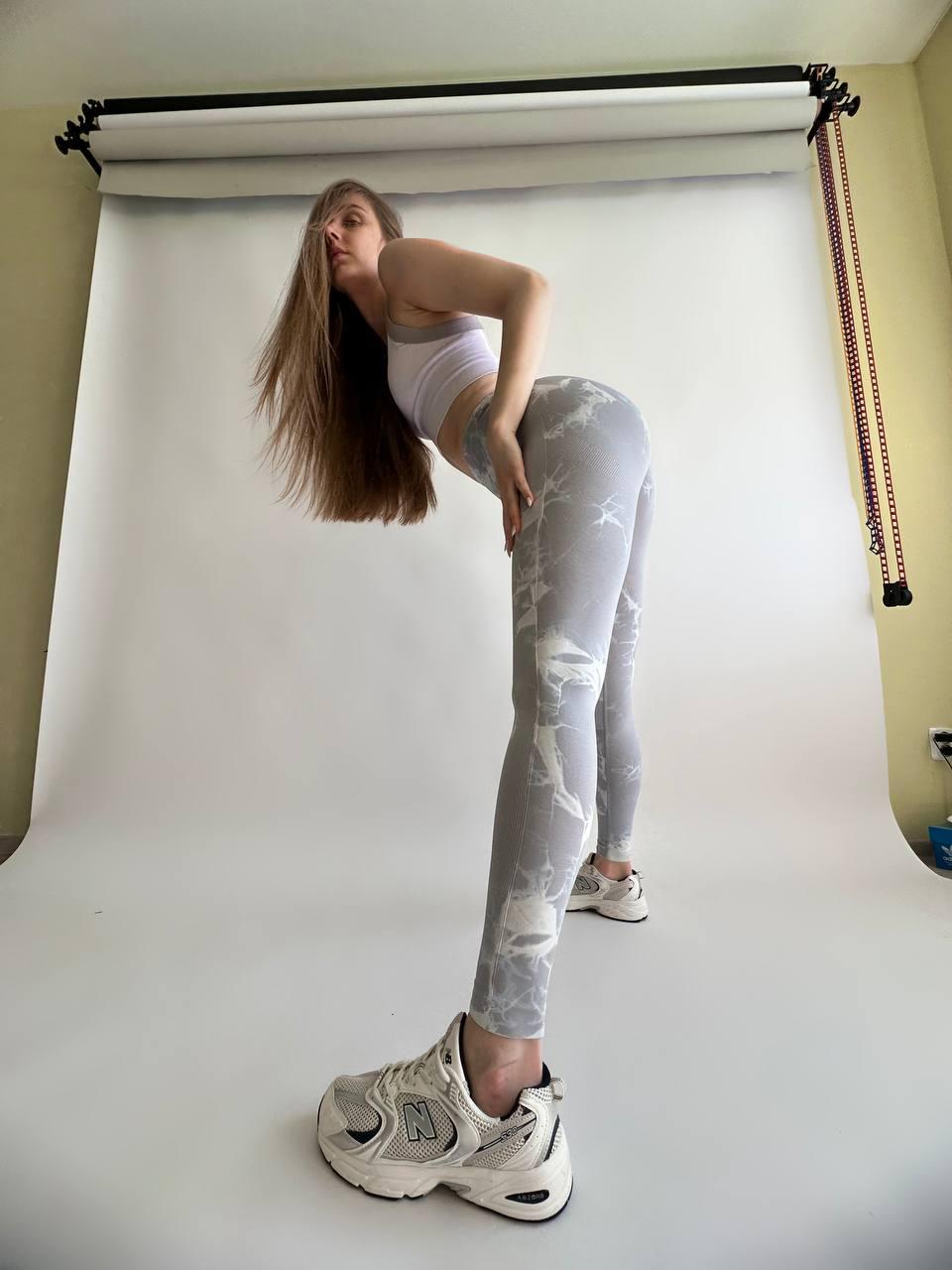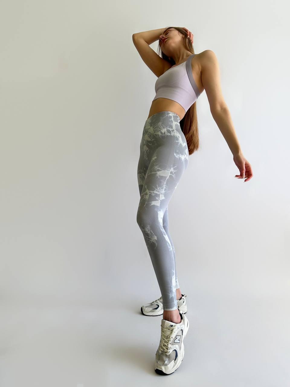 Женские Гладкие Серые Лосины Push Up с Мраморным Принтом