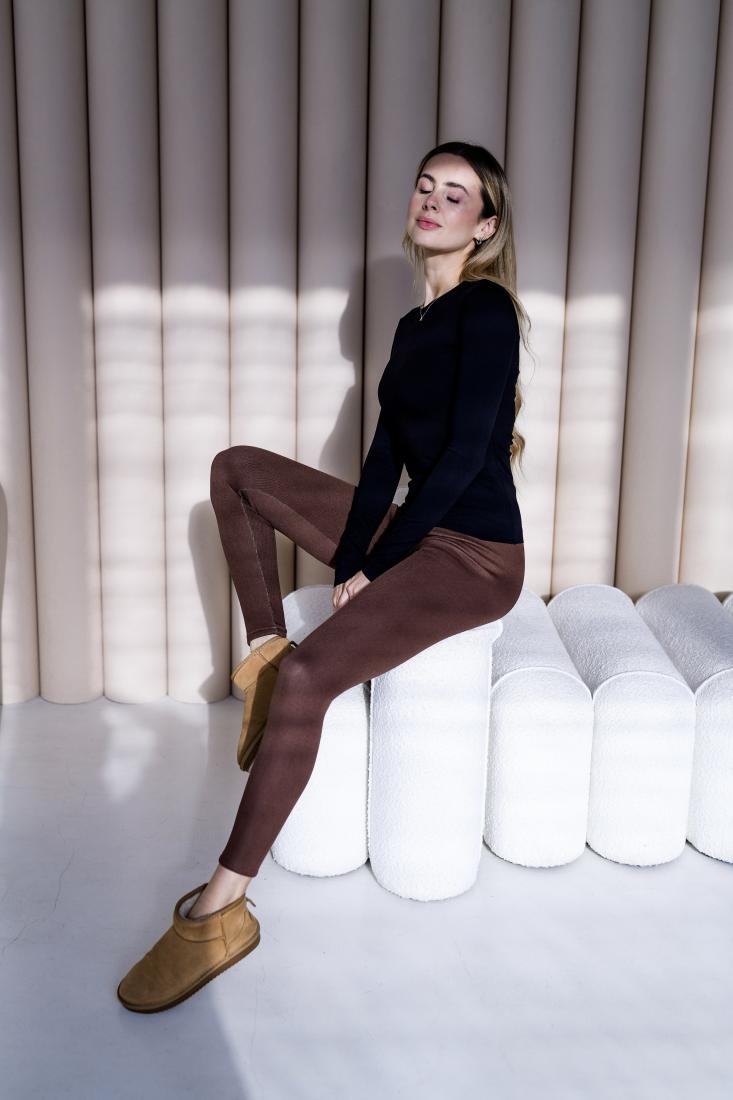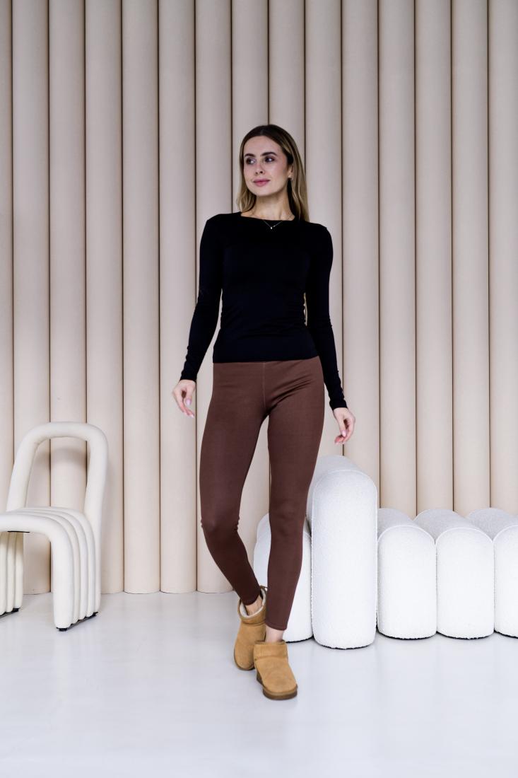 Женские Утепленные Базовые Коричневые Лосины Леггинсы