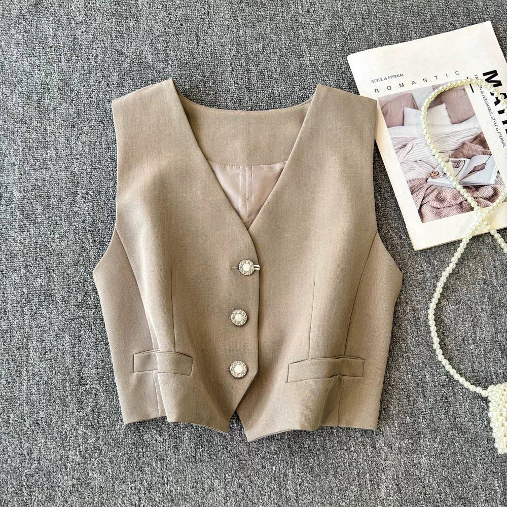 Женский Базовый Классический Бежевый Жилет на Пуговицах с Затяжкой