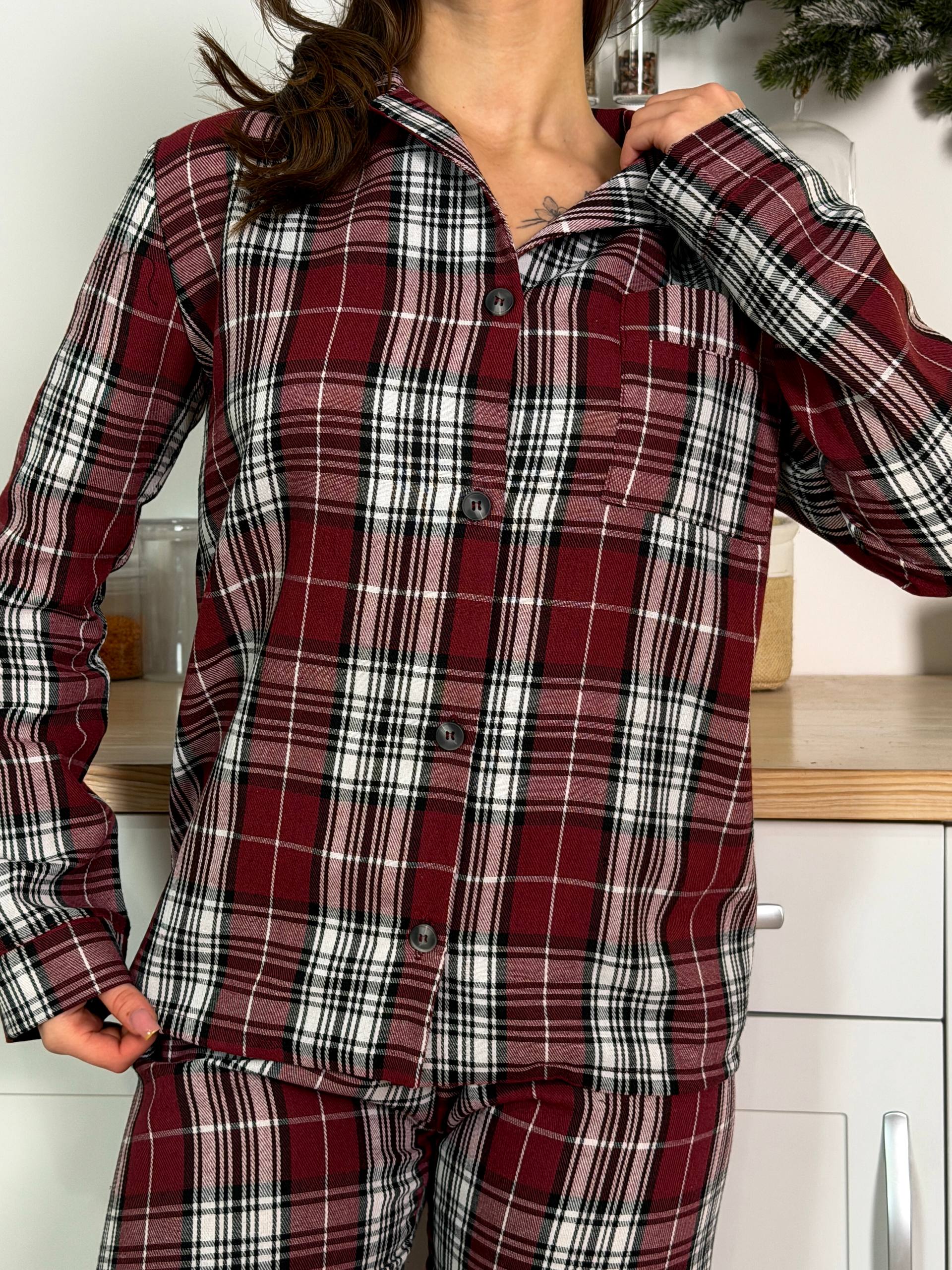 Женская Бордовая Клетчатая Пижама (Рубашка + Штаны)