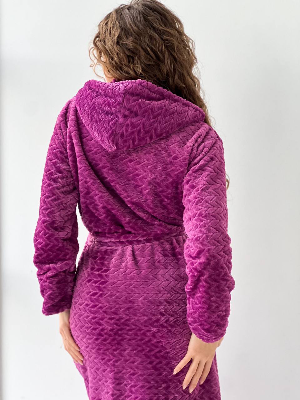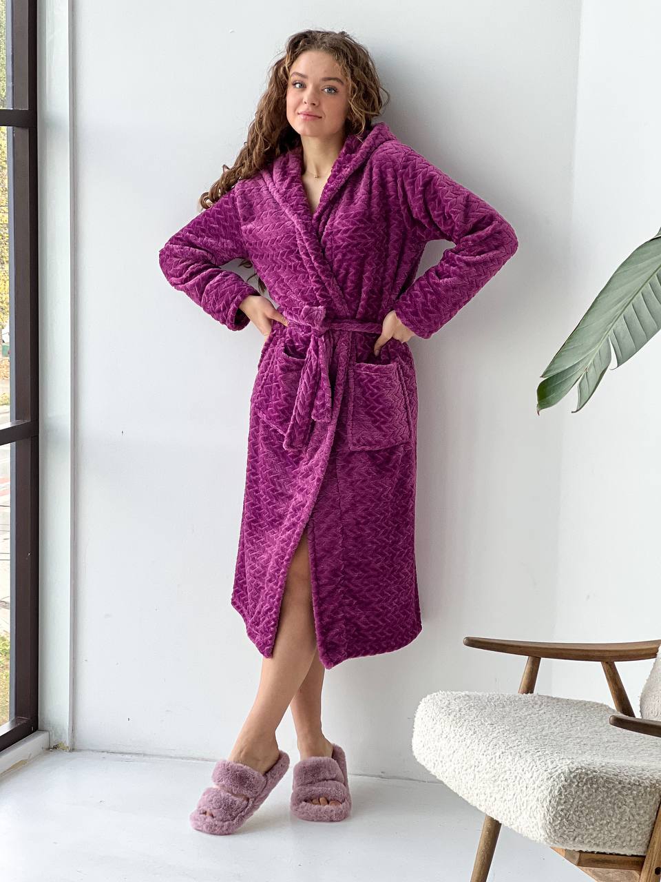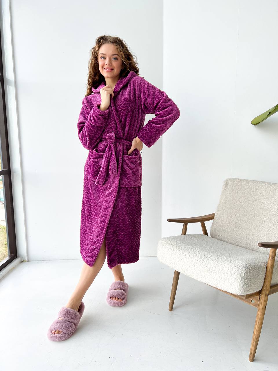 Женский Мягкий Махровый Халат Цвета Фуксия – Длинный с Капюшоном и Поясом