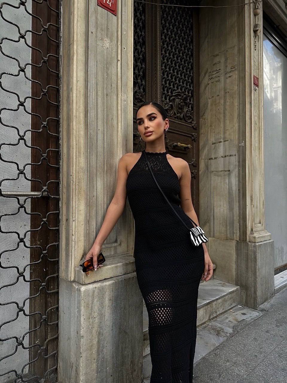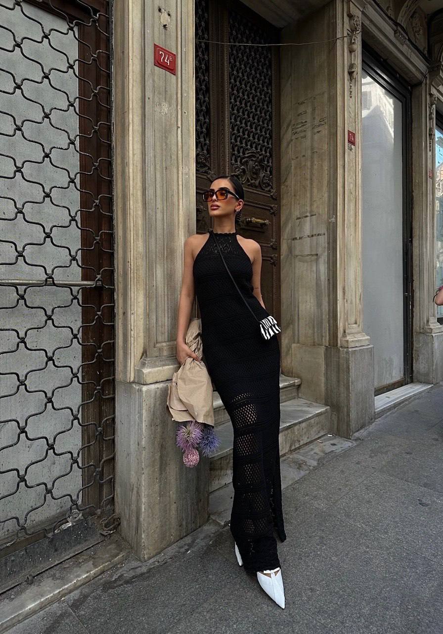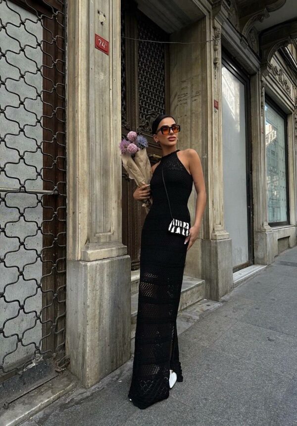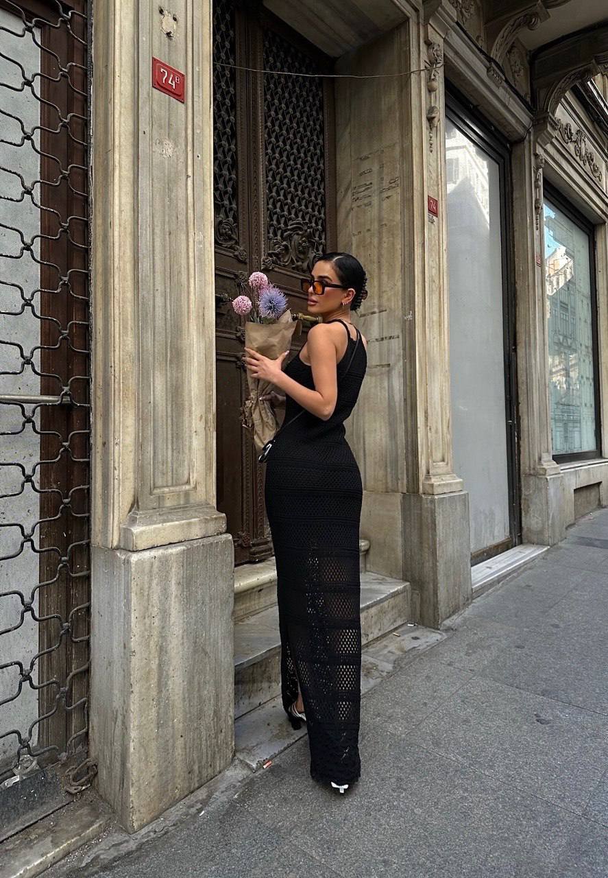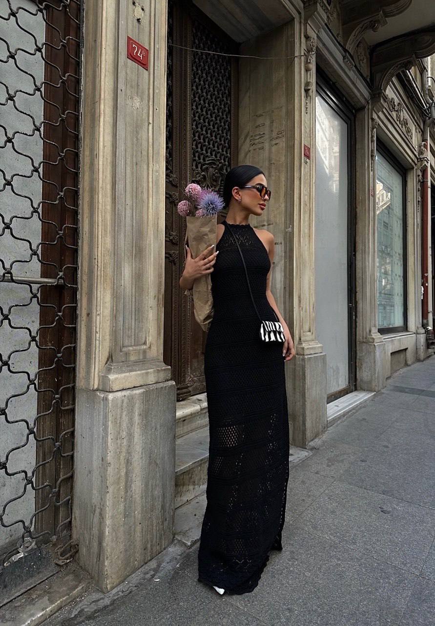 Женское Длинное Летнее Черное Платье Макси – Вязаное Ажурное без Рукавов